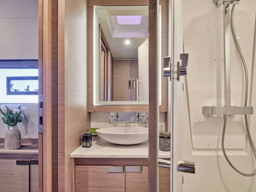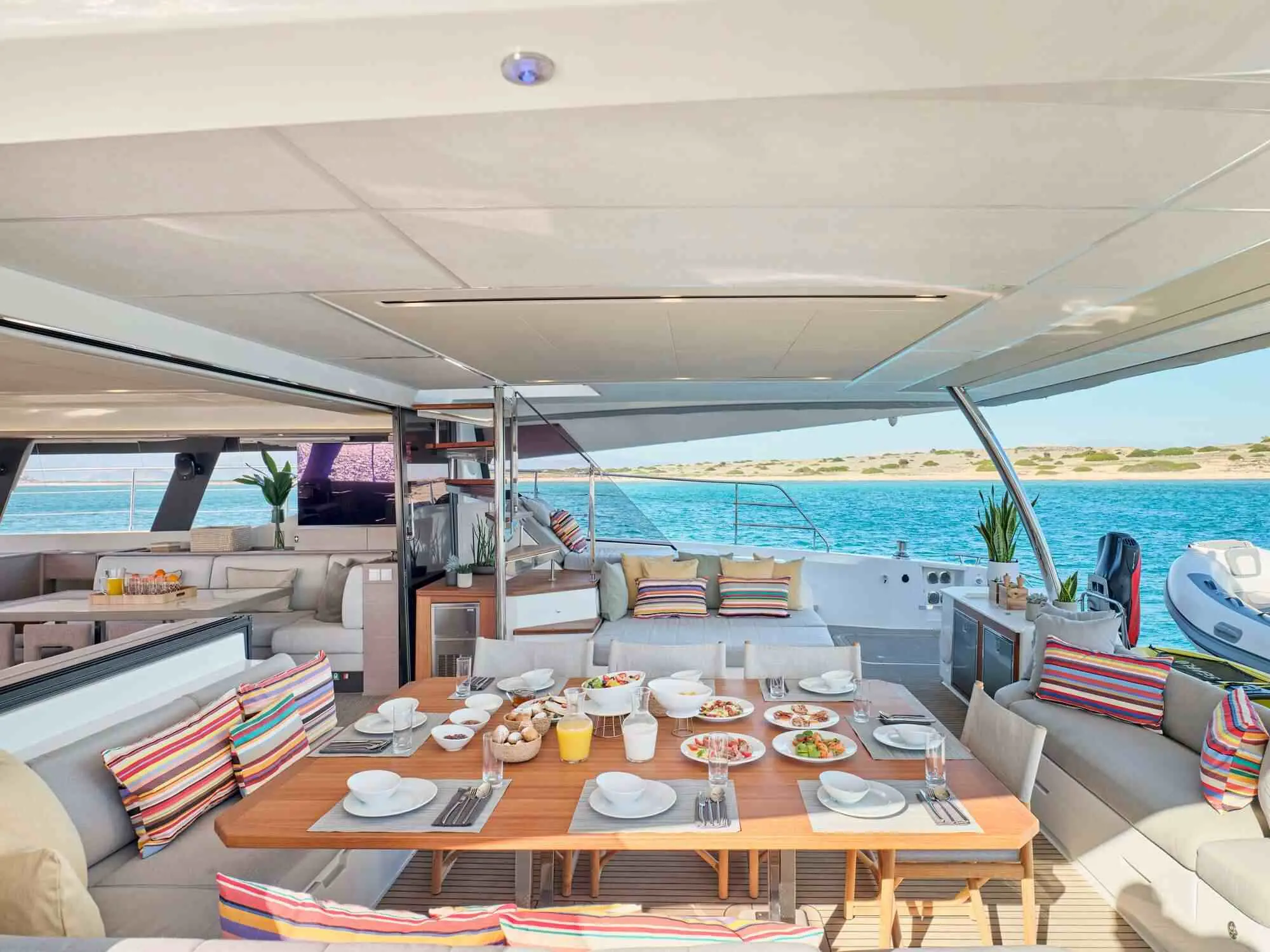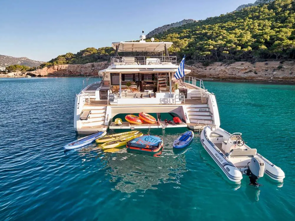 The Power Catamaran Power 67 Alena offers a seamless mix of luxury, performance, and versatility, making it the perfect choice for exploring Greece's idyllic islands. Whether you're lounging in the Jacuzzi, enjoying gourmet meals on deck, or partaking in water sports, Alena provides an unmatched experience. With its sleek design and professional crew, Alena is ideal for families, friends, or small groups seeking a luxurious and adventurous escape.