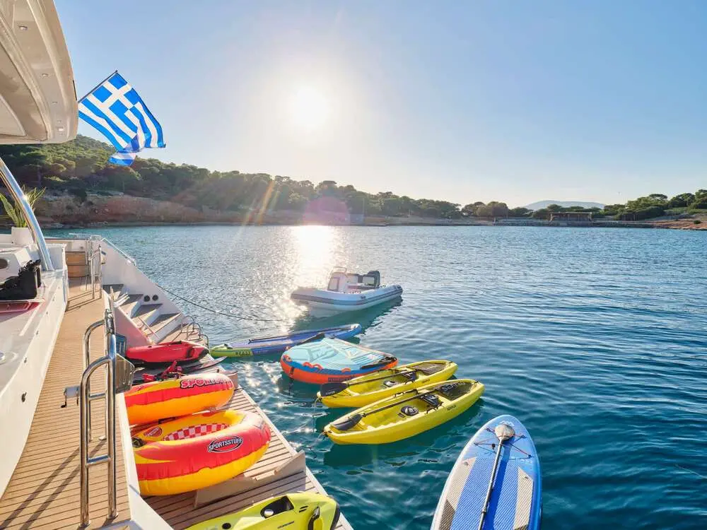 Alena offers luxurious accommodations for up to eight guests in four spacious double cabins. Alena is equipped with high-end features that cater to both comfort and entertainment. The Power 67 Alena offers a variety of water toys and equipment to enhance your yachting experience.