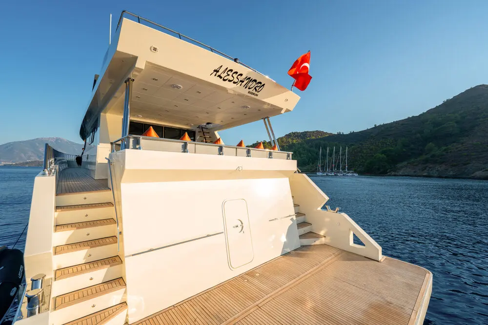 The Motor Yacht Alessandro, a sleek and modern 26-meter vessel, offers a luxurious and memorable yachting experience in the vibrant waters of Bodrum, Turkey. Newly launched in 2024, Alessandro is designed with sophisticated comfort and adventure in mind. With spacious accommodations, advanced amenities, and a selection of water toys, this motor yacht is ideal for families, friends, or small groups seeking an exceptional getaway.