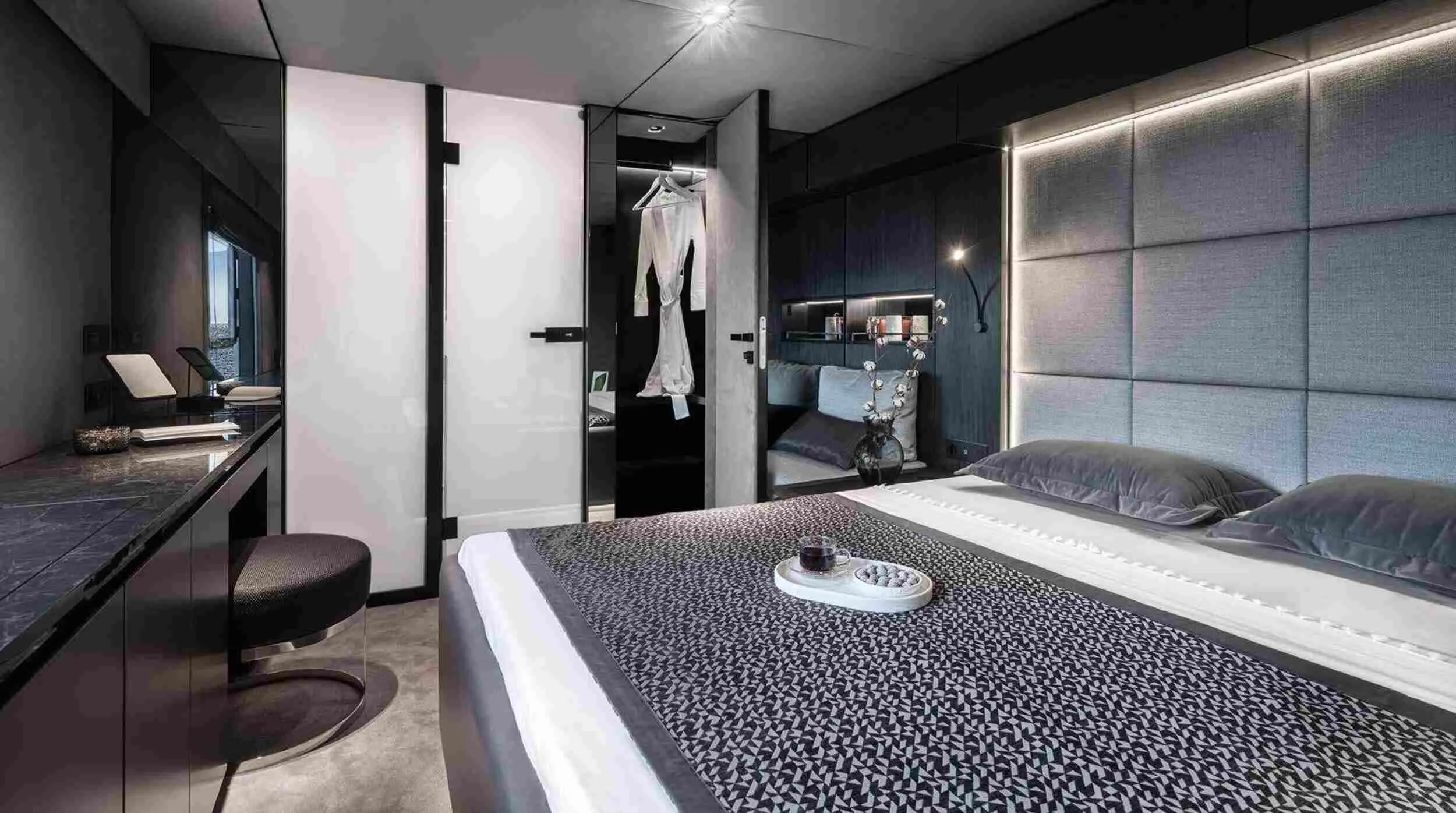 Crafted in 2021, "Alteya" marries innovative design with unmatched luxury, providing spacious accommodations and state-of-the-art amenities for up to 8 guests. Each of the four queen bed master cabins serves as a private retreat, designed with comfort and style in mind.