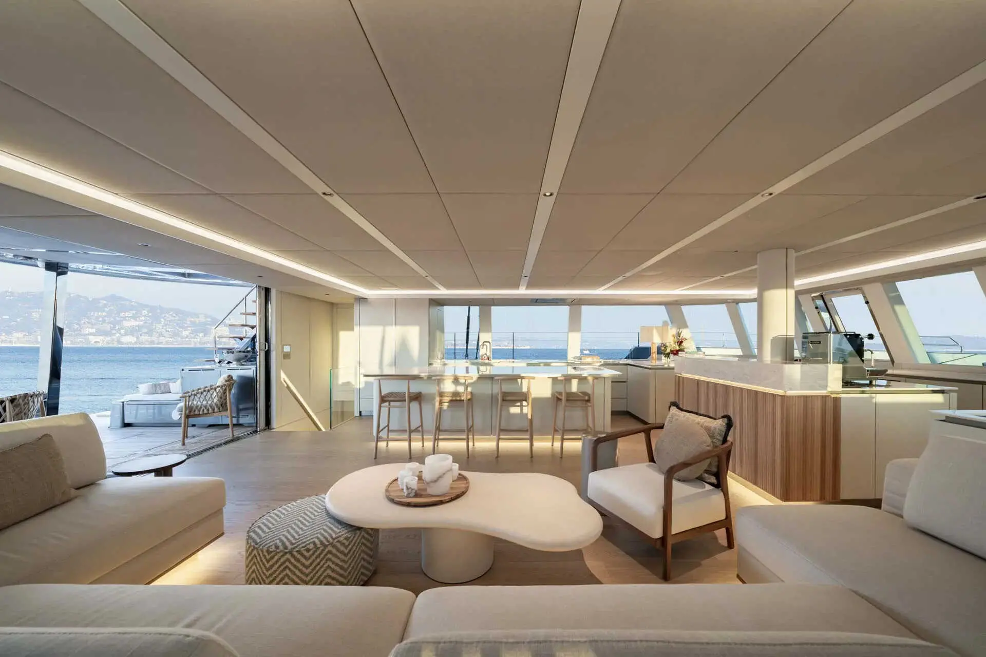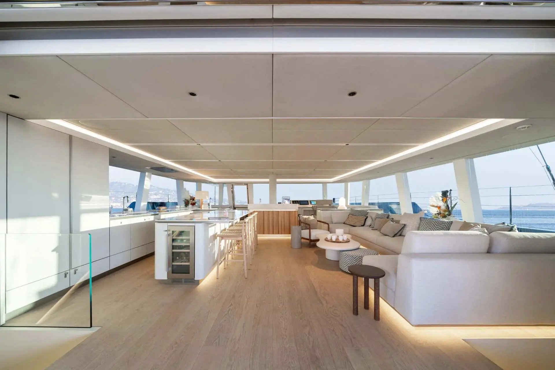 The Sunreef 80 is classified as a catamaran, offering increased stability and spaciousness compared to traditional monohull yachts. Its wide beam and twin hulls make for a smooth sailing experience, ensuring comfort even in rougher seas.