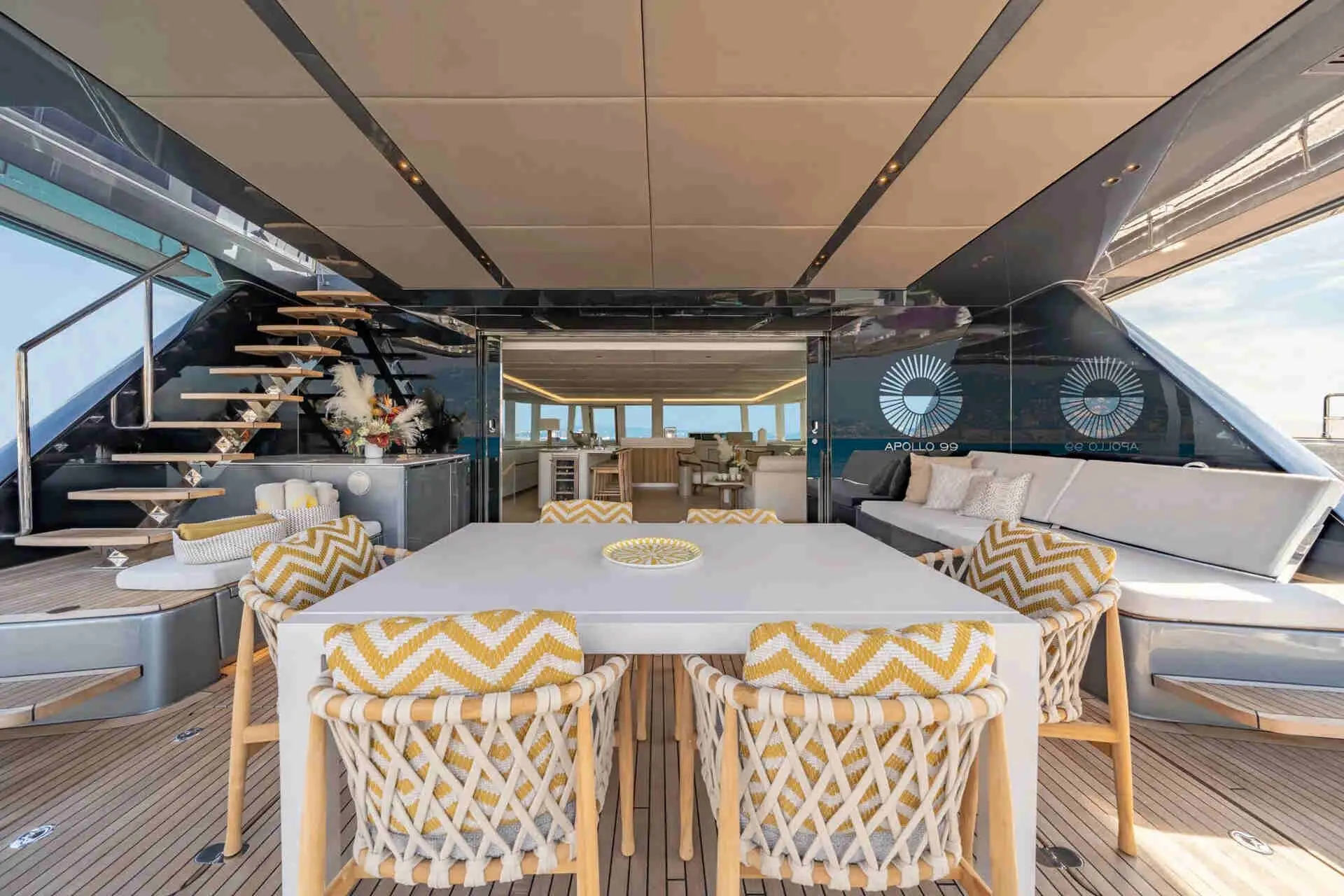 Apollo 99 offers luxury accommodations designed for comfort and privacy, with air conditioning available throughout the yacht. The variety of cabins makes Apollo 99 ideal for both family charters and groups of friends, providing everyone with their own space and amenities.