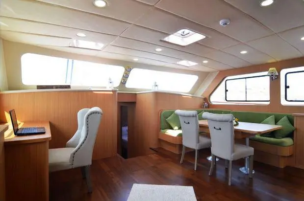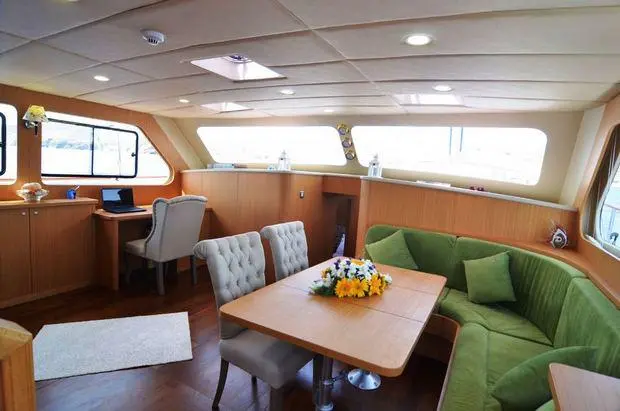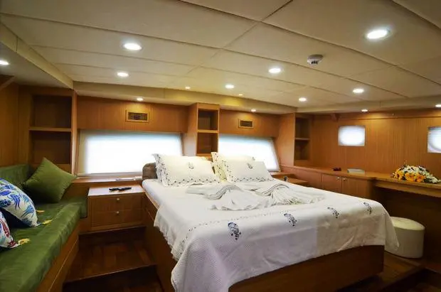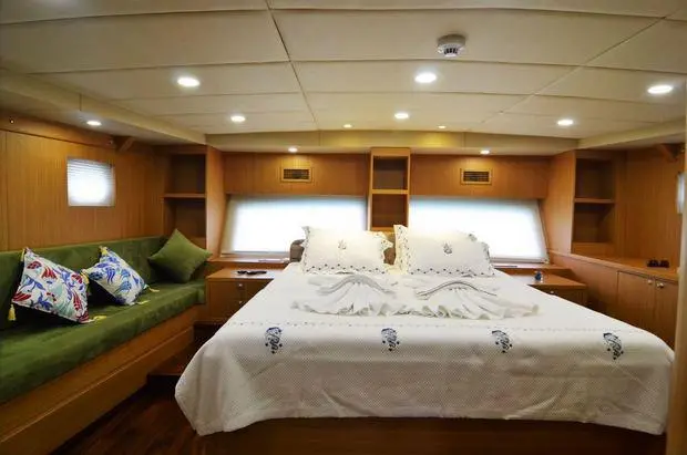 The Artemis features two master suites and two convertible twin cabins, each adorned with exquisite craftsmanship and equipped with private bathrooms and air conditioning. These sanctuaries offer a peaceful retreat after a day of adventure, providing the perfect blend of luxury and comfort.