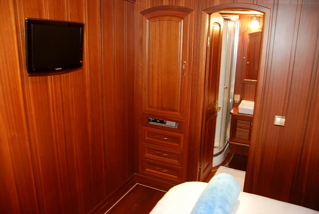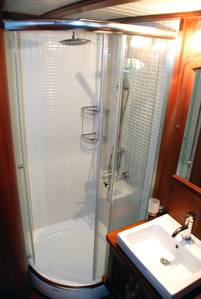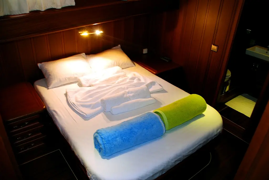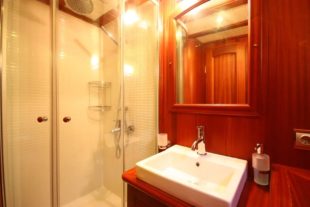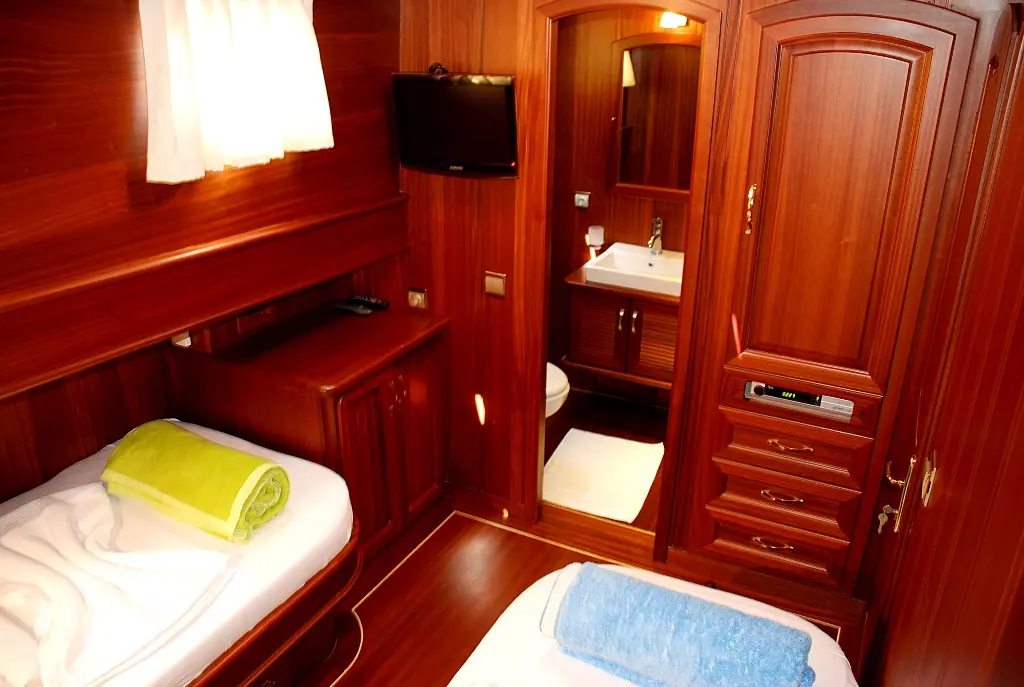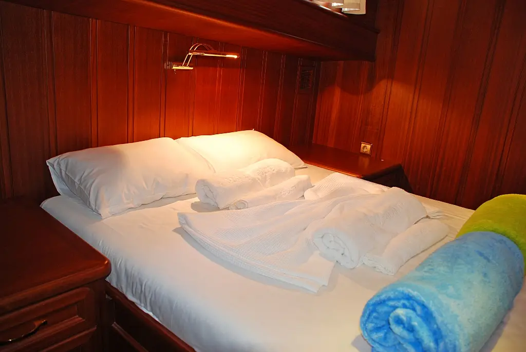 "Atalante" offers comfortable and stylish accommodations for up to 8 guests, featuring two double cabins and two twin cabins, each with en-suite bathrooms, ensuring privacy and relaxation. The air-conditioned interiors provide a cool retreat from the Mediterranean sun, making your stay onboard pleasant and enjoyable.