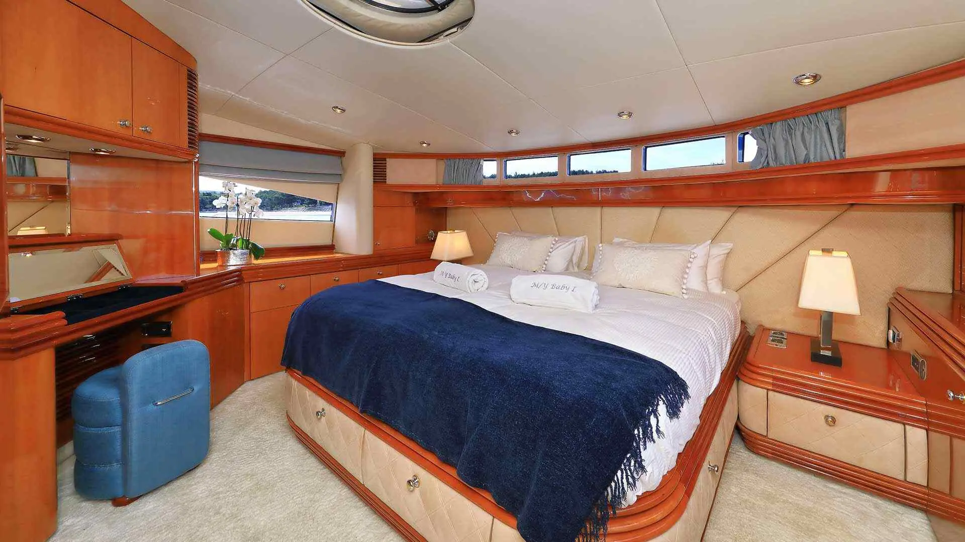 Baby I features four exquisite cabins: one master, one VIP, one double, and one twin, each with en-suite facilities and air conditioning. These sanctuaries of serenity offer guests a personal retreat adorned with luxurious fittings and the finest linens, ensuring restful nights after days filled with exploration.