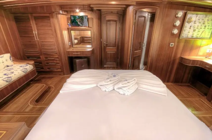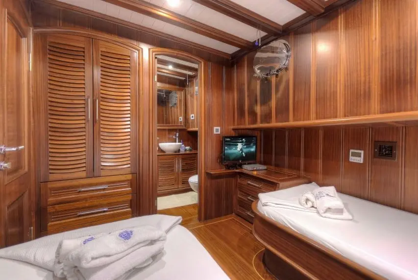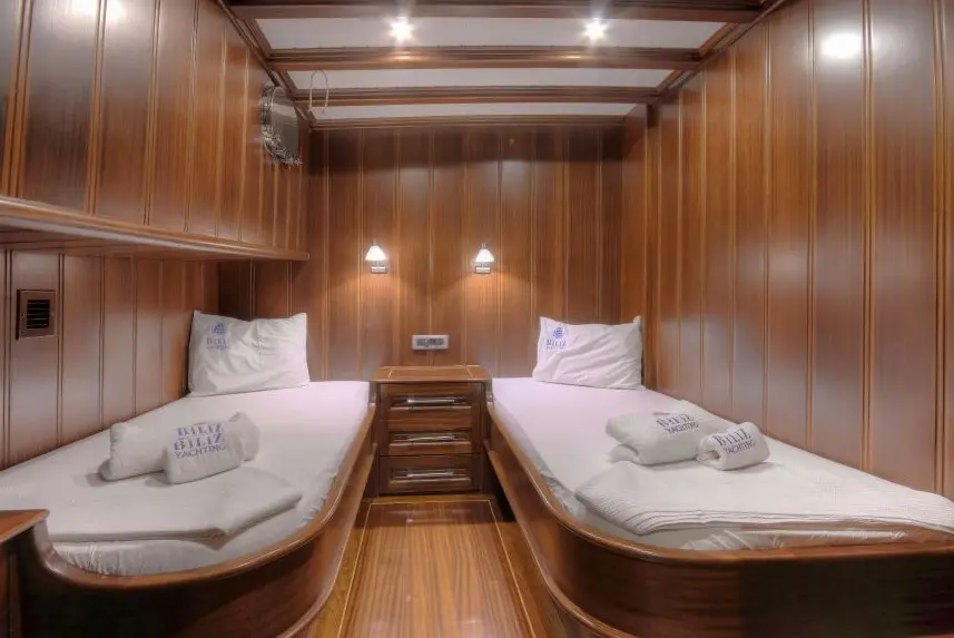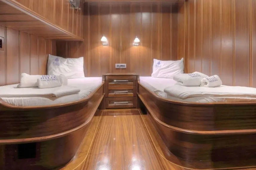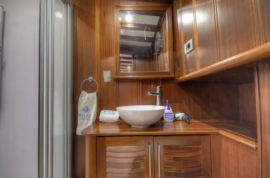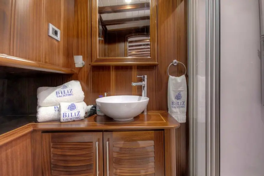 As you set sail on "Biliz," you are not just embarking on a cruise; you are entering a world where luxury meets the crystal-clear waters of the Mediterranean. With two master cabins, one double, and one twin cabin, each featuring en-suite bathrooms and air conditioning, "Biliz" provides a tranquil and opulent retreat for up to 8 guests.