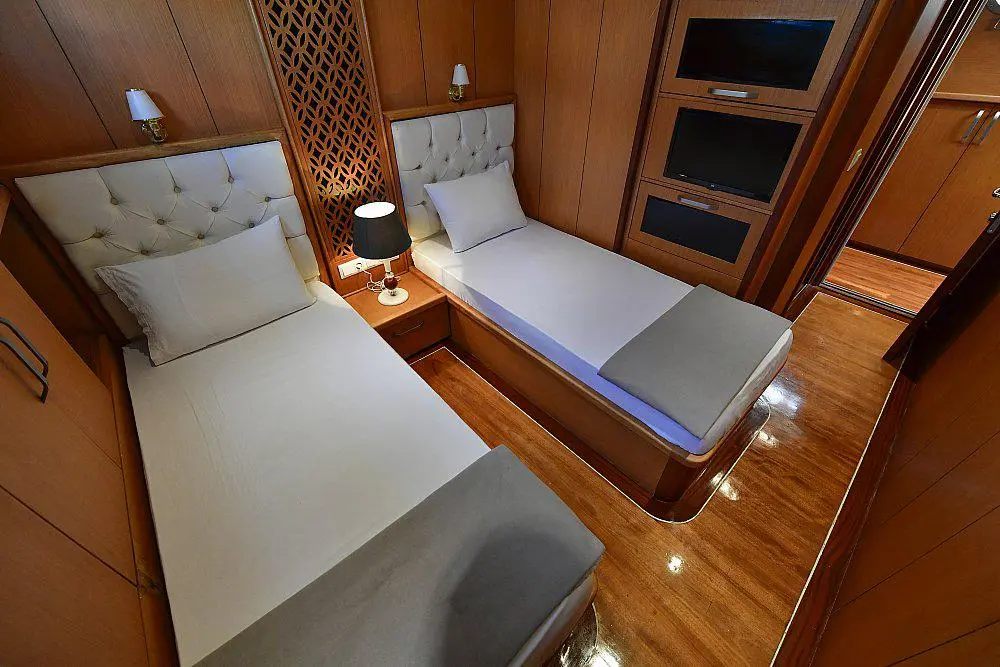 With its Marmaris base, Gulet Blu Dream is an excellent choice for exploring Turkey’s stunning coastline and islands. The Gulet Blu Dream is equipped with GPS and full maritime equipment, ensuring a safe and smooth journey. This gulet provides premium entertainment and water activities, making every voyage a mix of relaxation and fun.