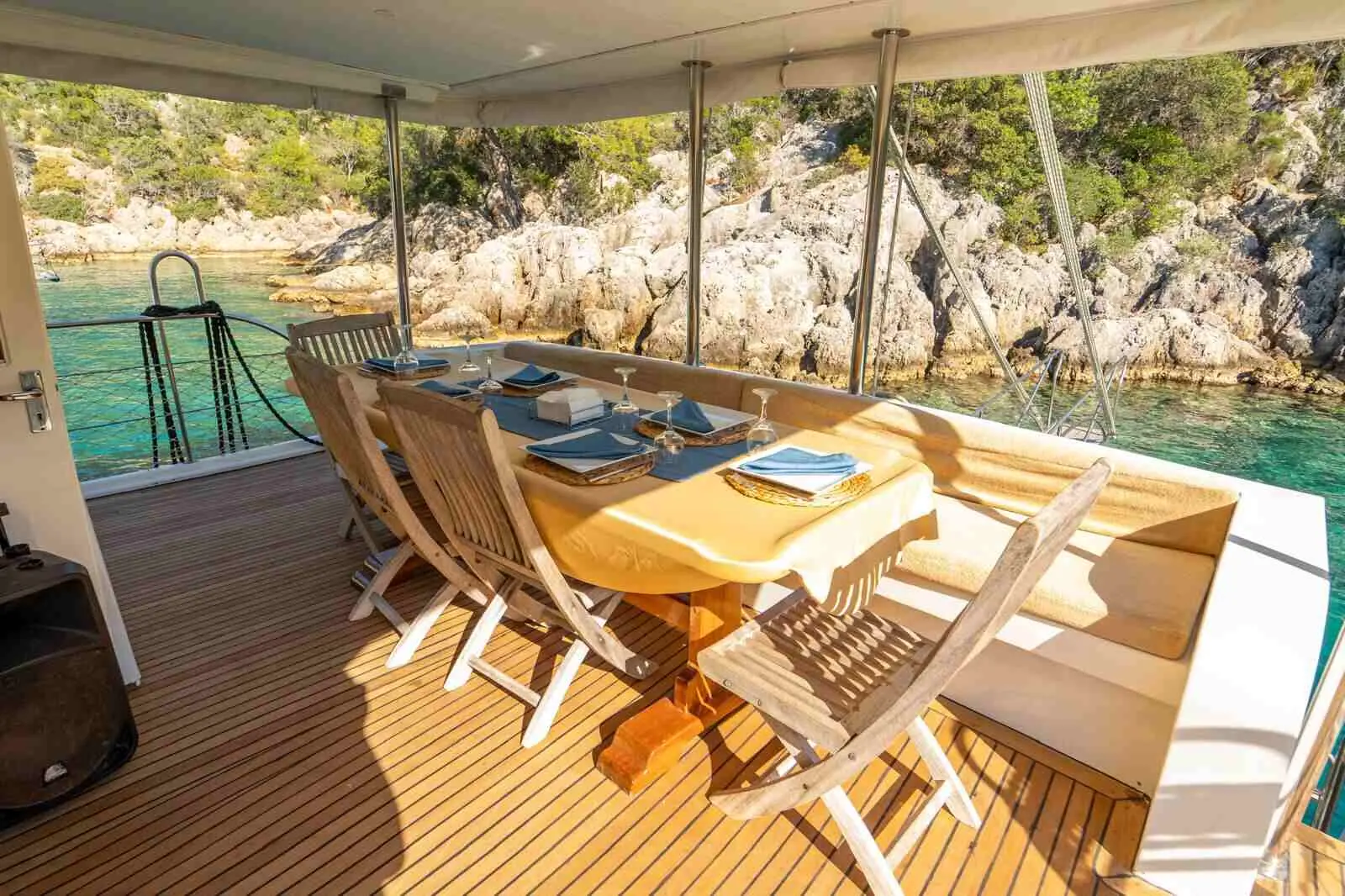 Whether you want to relax or enjoy exciting activities, Gulet Çağay has something for everyone. With spacious outdoor decks and lounge areas, you can enjoy sunbathing, dining, or simply soaking in the breathtaking views of the Turkish coast.