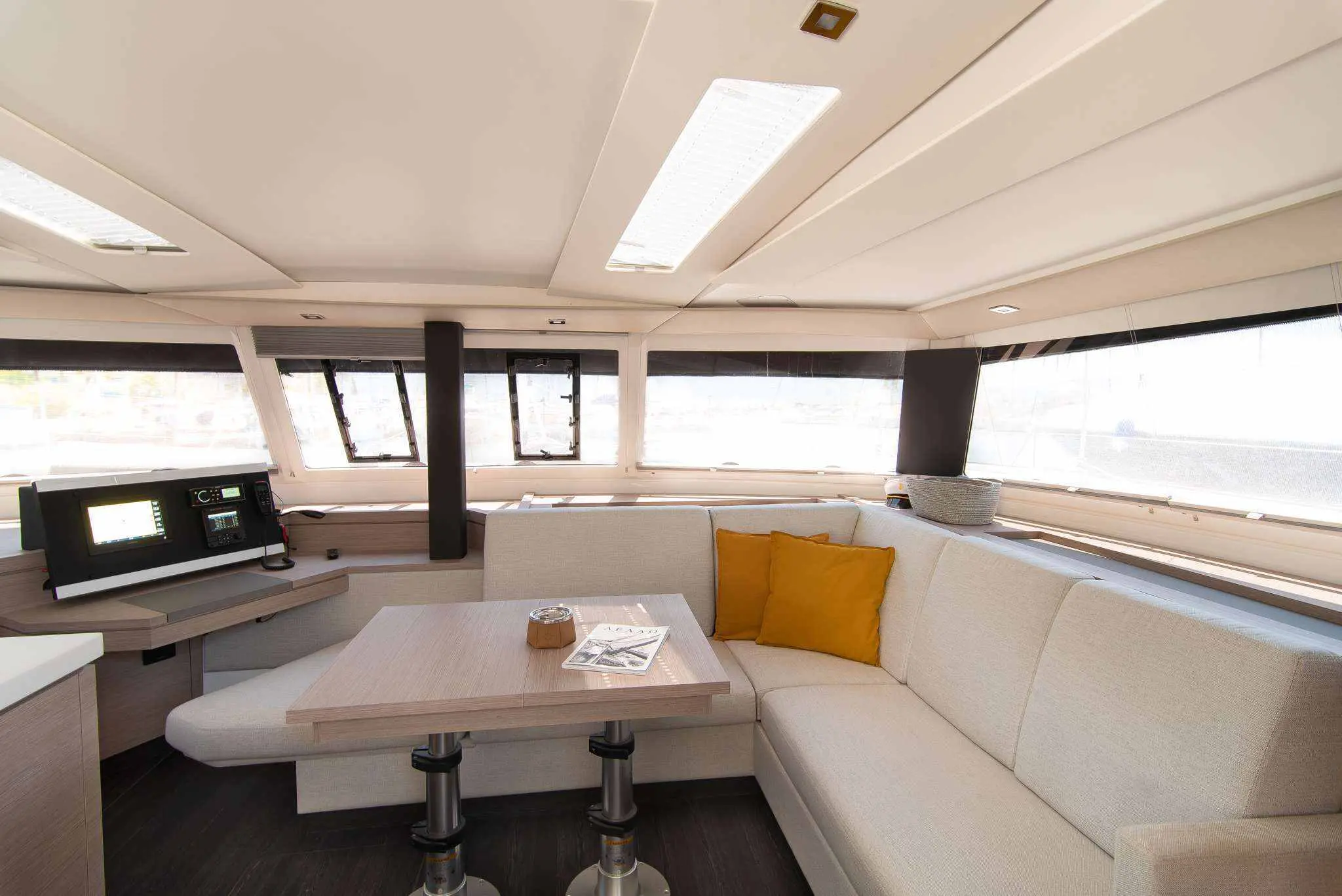 The Saona 47 Alegria catamaran is designed for smooth sailing and effortless navigation. Equipped with the latest technology, it ensures safety, stability, and ease of movement across the Greek islands. Whether you're an experienced sailor or a first-time cruiser, this catamaran provides a hassle-free yachting experience.