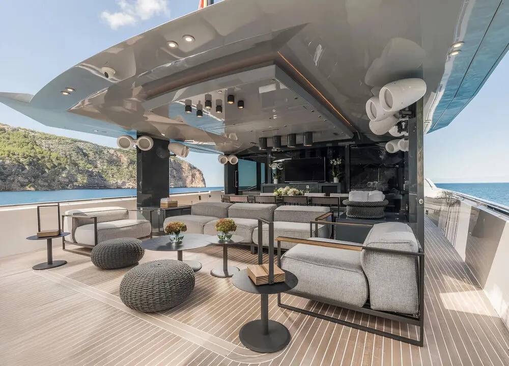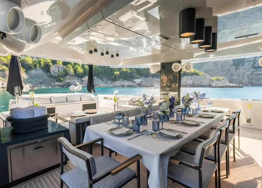 Dhamma II features wide decks ideal for alfresco dining, sunbathing, or lounging under shaded areas. The crew can prepare meals, set up social spaces, or organize activities based on guest desires. With panoramic views and open living spaces, outdoor life on this yacht is truly spectacular.