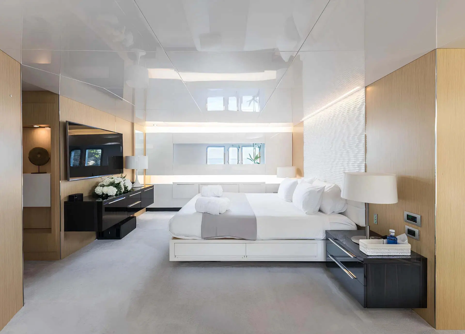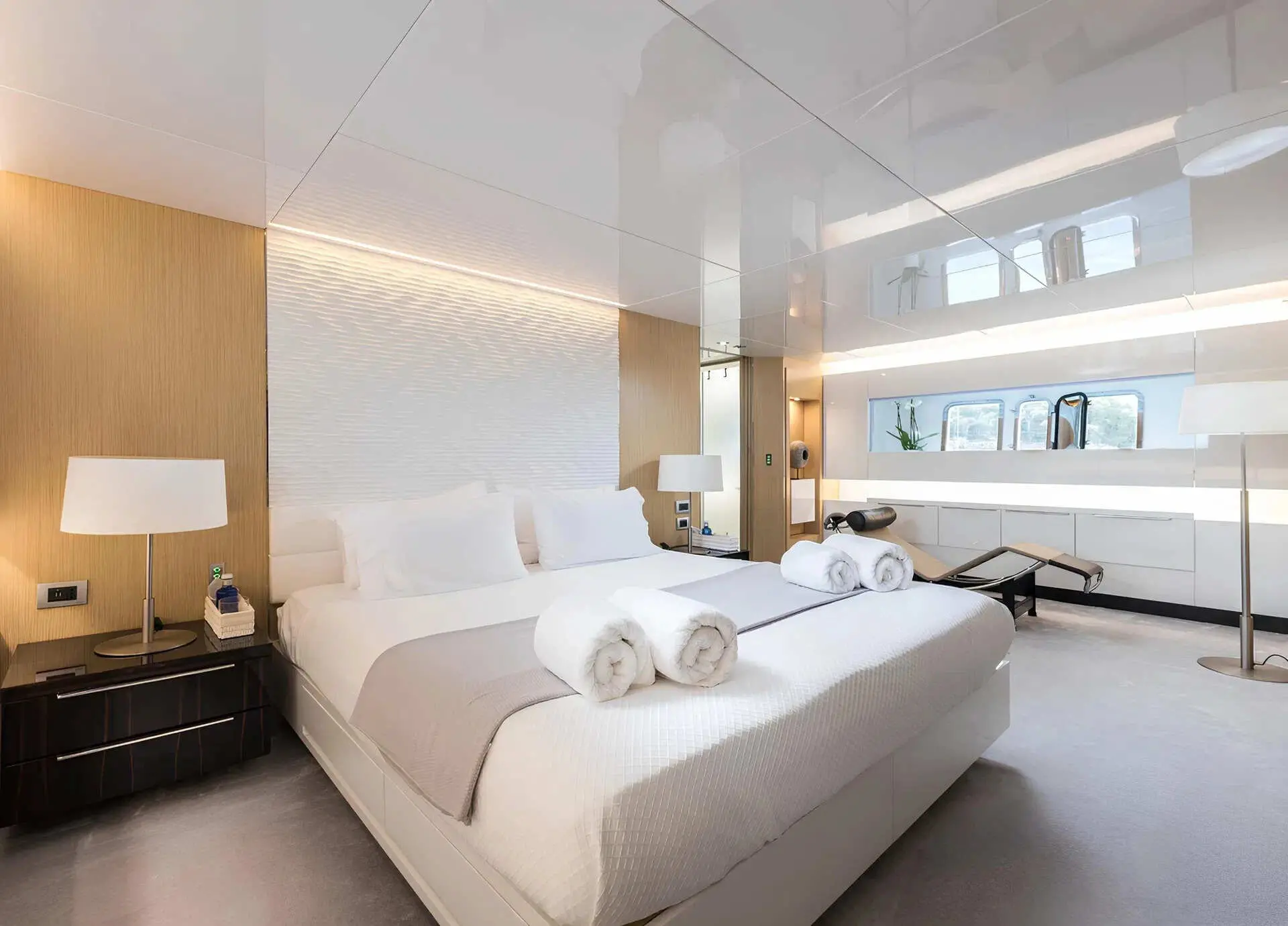 The yacht beautifully accommodates 10 guests in four luxurious cabins. Each cabin is crafted with fine materials and refined décor, providing a restful sanctuary after days filled with exploration.