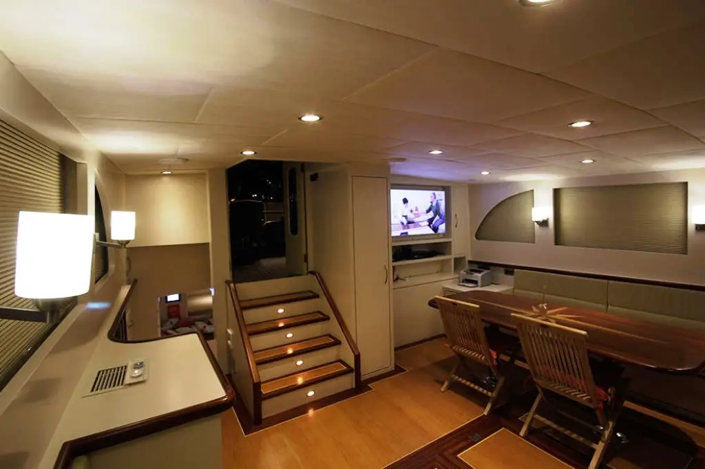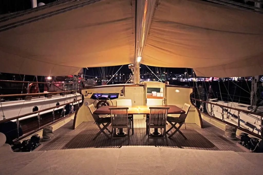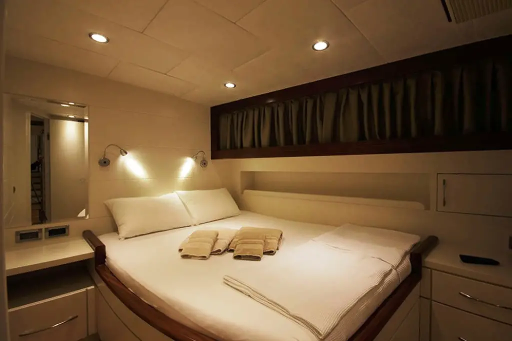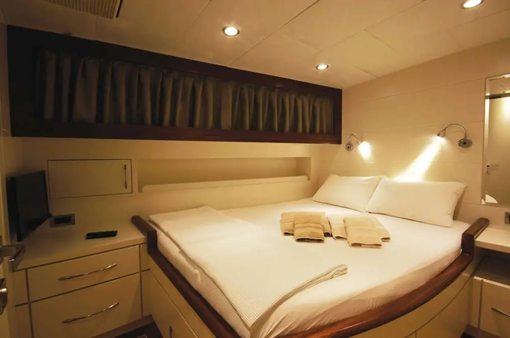 The interior of Endless exudes a commitment to elegance and comfort, with a décor that marries contemporary luxury with the warmth of traditional woodwork. Guests can unwind in the opulent salon, equipped with a TV, DVD player, and music system, or dine al fresco, savoring gourmet dishes prepared by the onboard chef in the indoor restaurant.