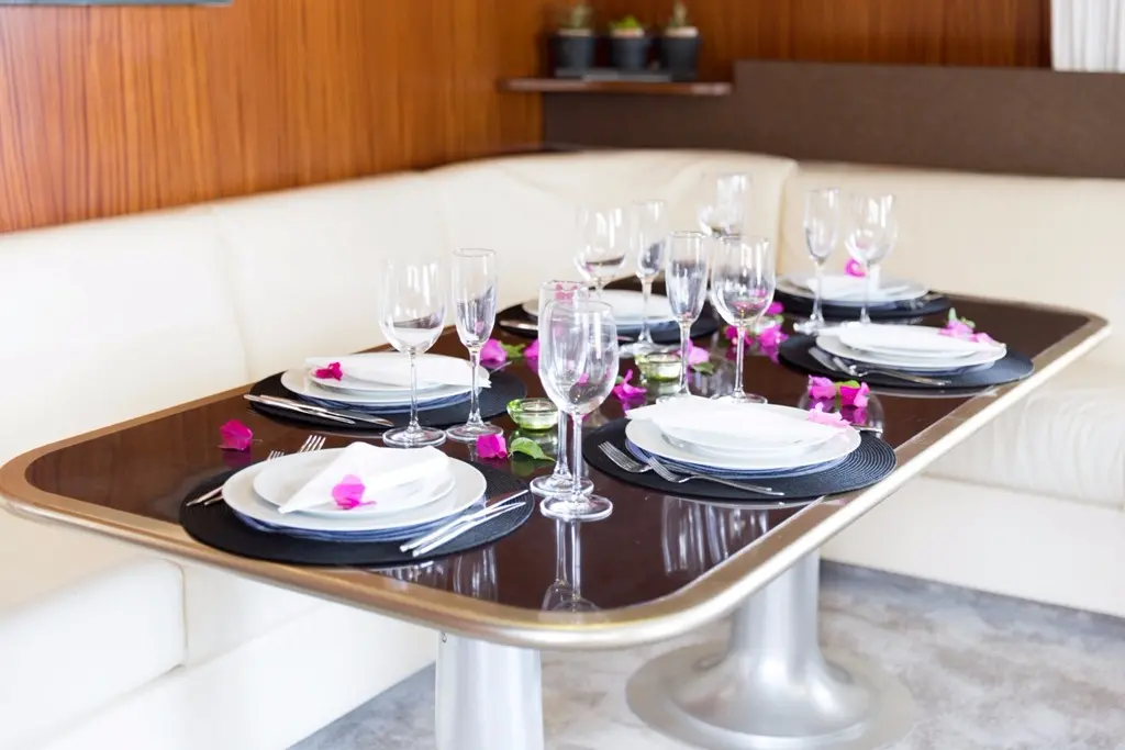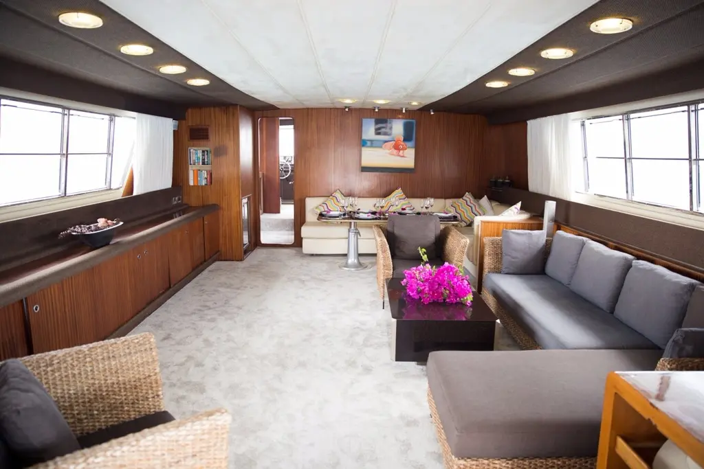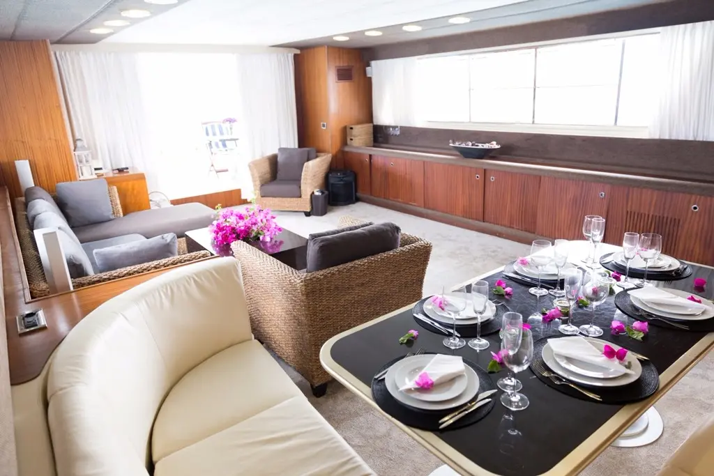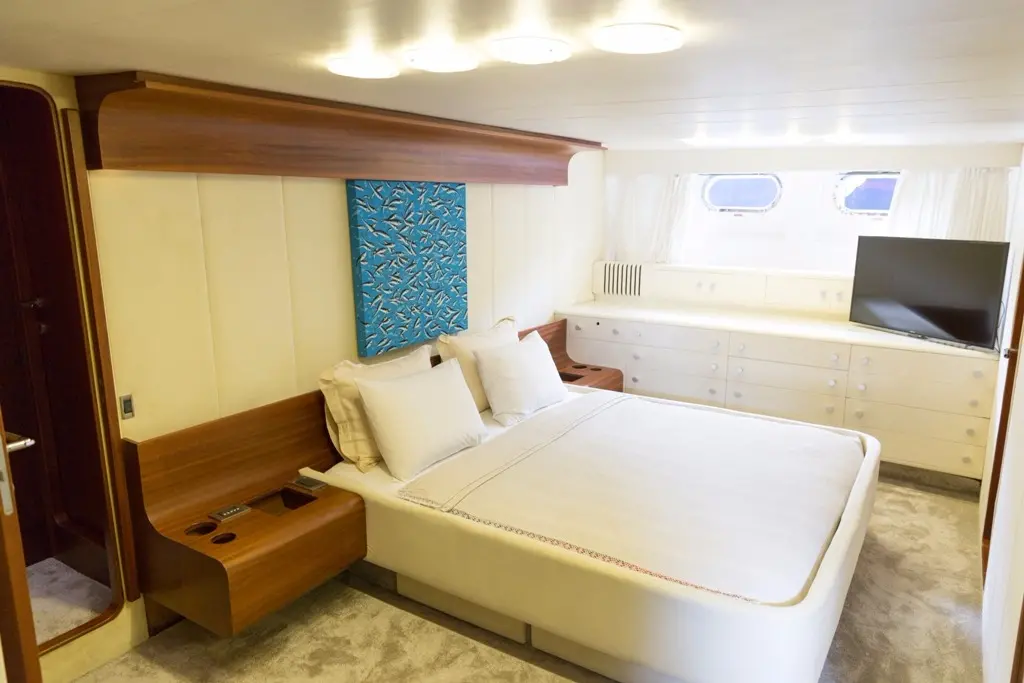 The interior of Elifim XI exudes a commitment to elegance and comfort, with a décor that beautifully marries contemporary chic with the warmth of traditional woodwork. Guests can unwind in the opulent salon, equipped with a TV, DVD player, and music system for entertainment, or stay connected with wireless internet throughout their journey.