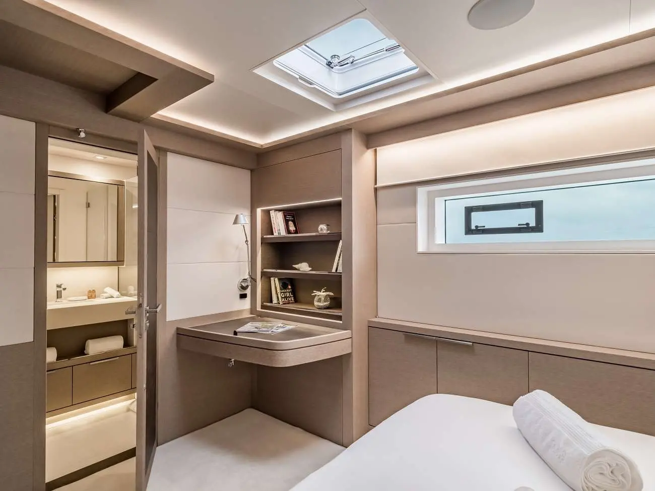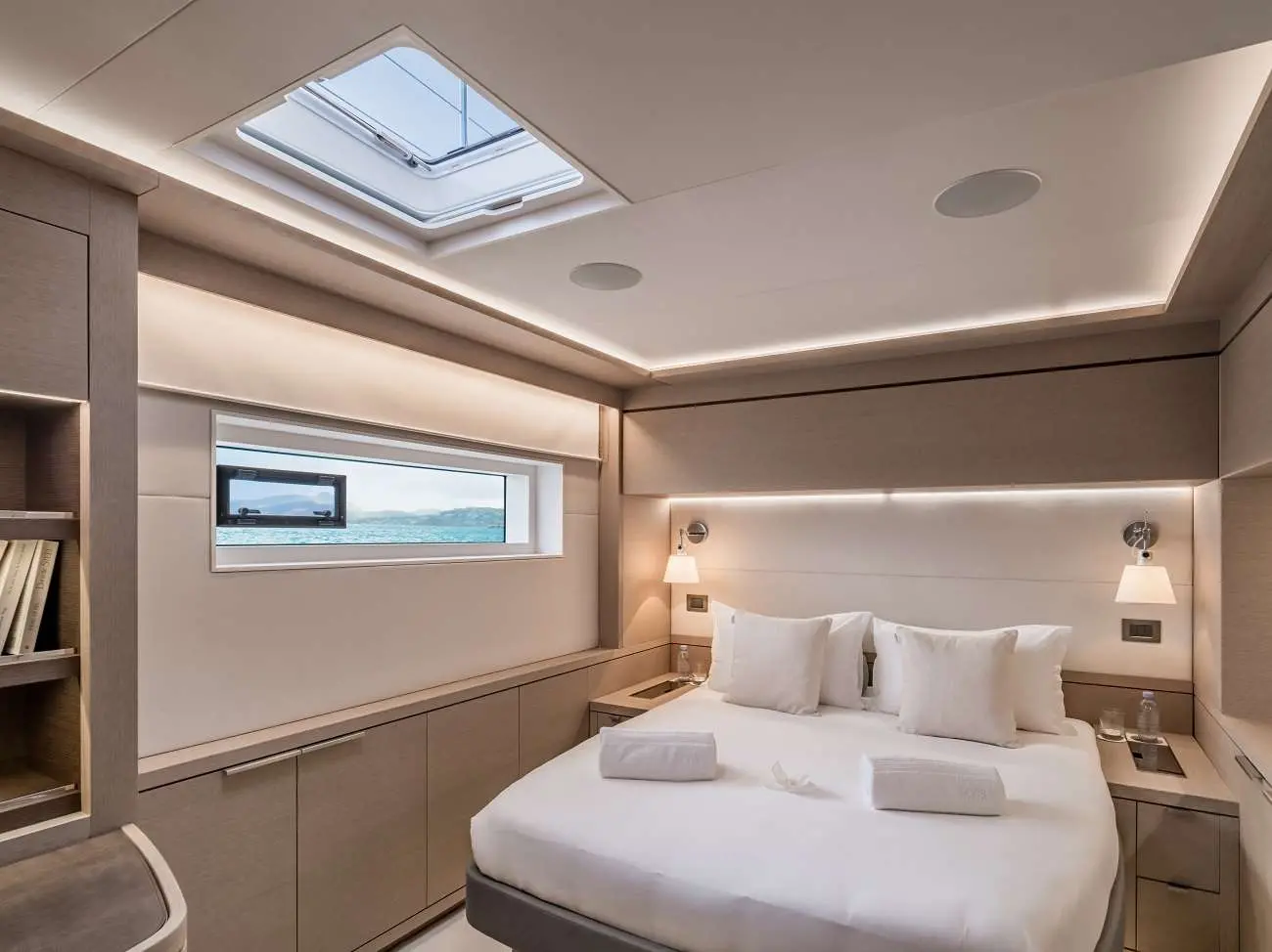 Frenchwest is designed to cater to every comfort of its guests, featuring four luxurious double cabins, each equipped with air conditioning, electric toilets, and private showers. The living spaces, including the owner's cabin and the communal living room, are fitted with entertainment systems and WIFI, making every moment onboard a delight.