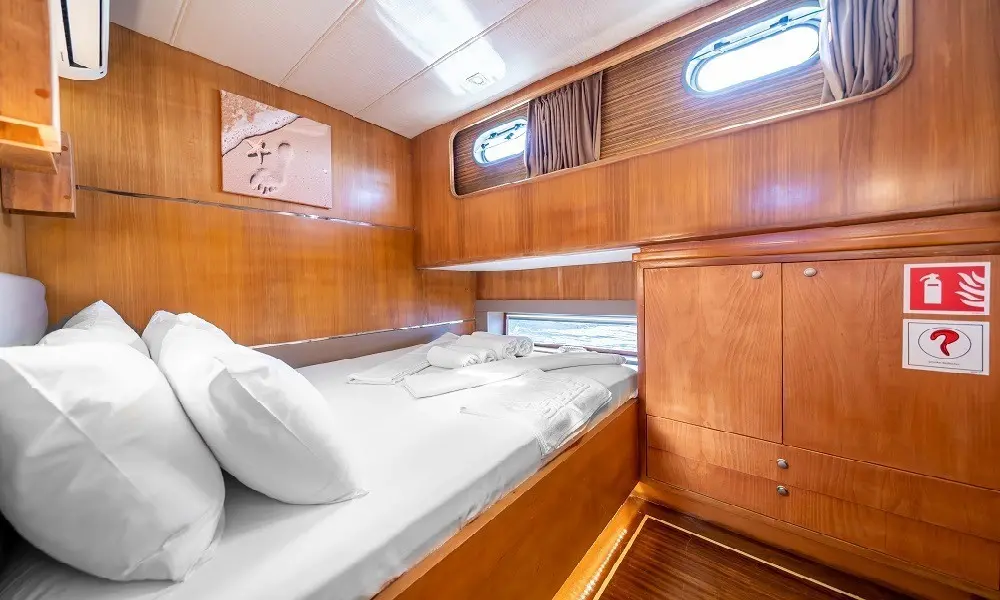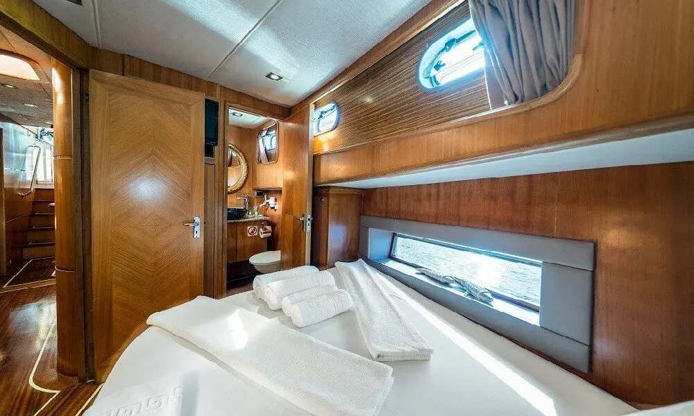 Designed for both comfort and privacy, the yacht offers 4 double cabins, allowing it to host up to 8 guests. Each cabin is crafted with elegance and ergonomic space management, ensuring restful nights after days filled with exploration and fun.
