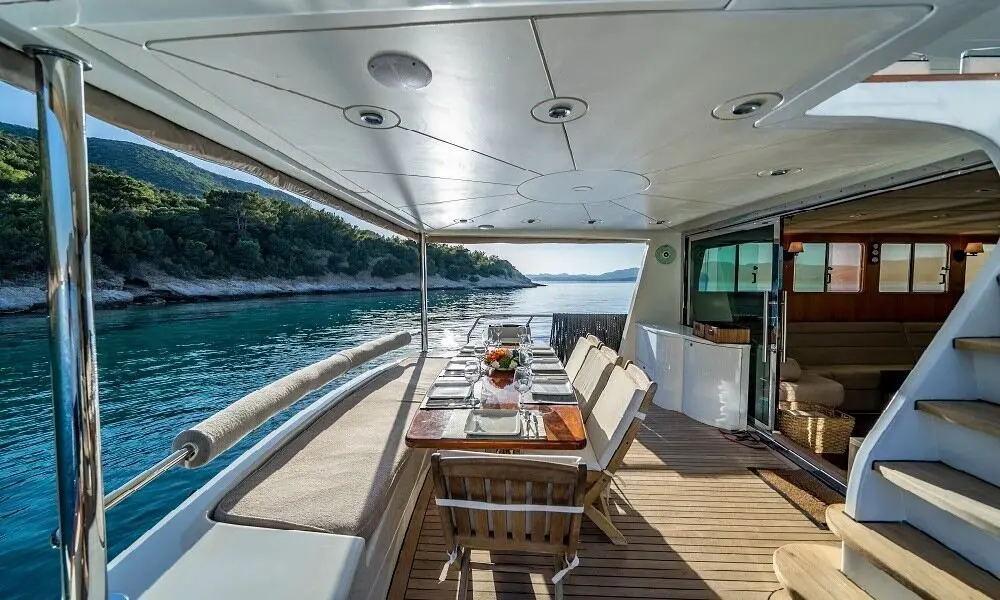 The yacht also features two generators (22 KW + 12 KW), ensuring uninterrupted power throughout your voyage. This supports air conditioning, entertainment systems, lighting, kitchen appliances, and all other onboard amenities.