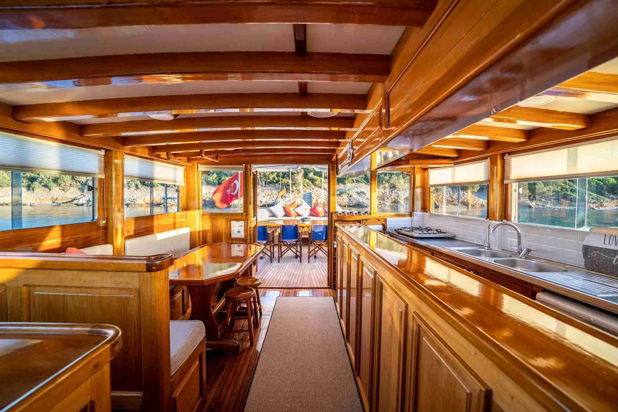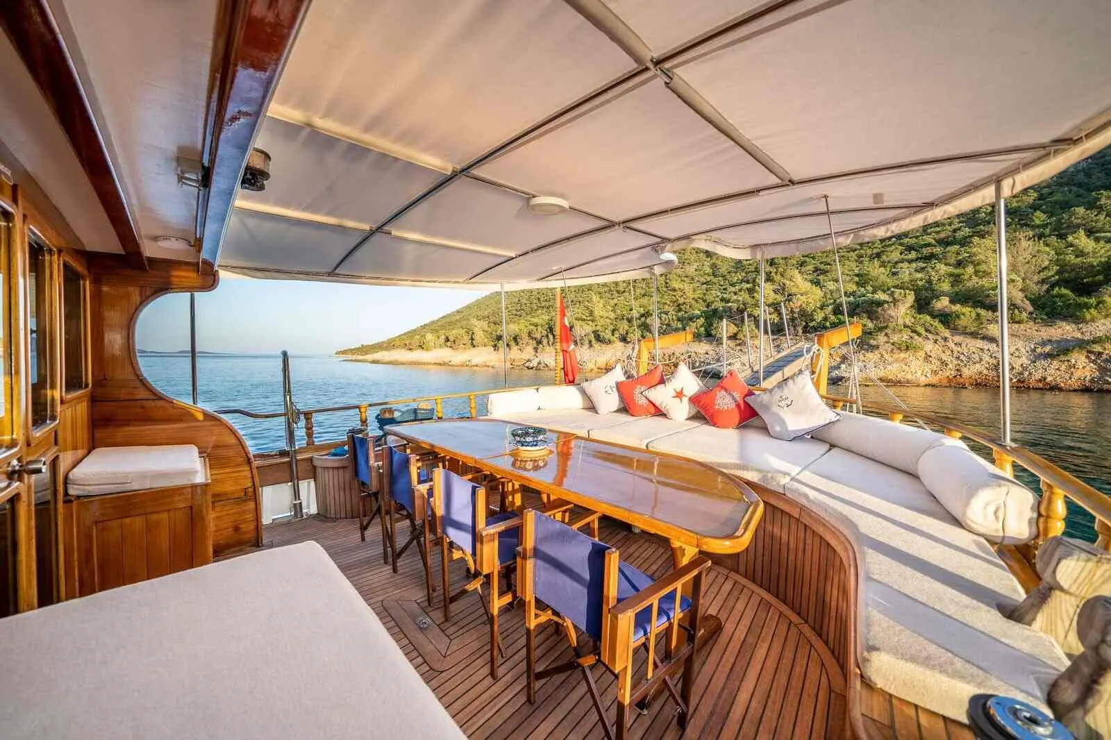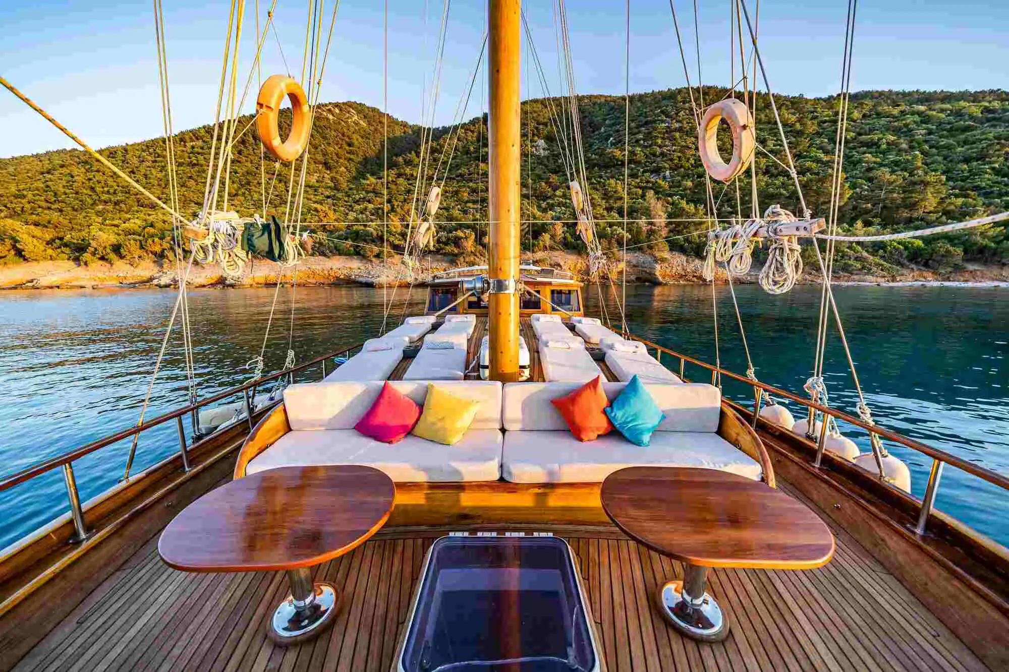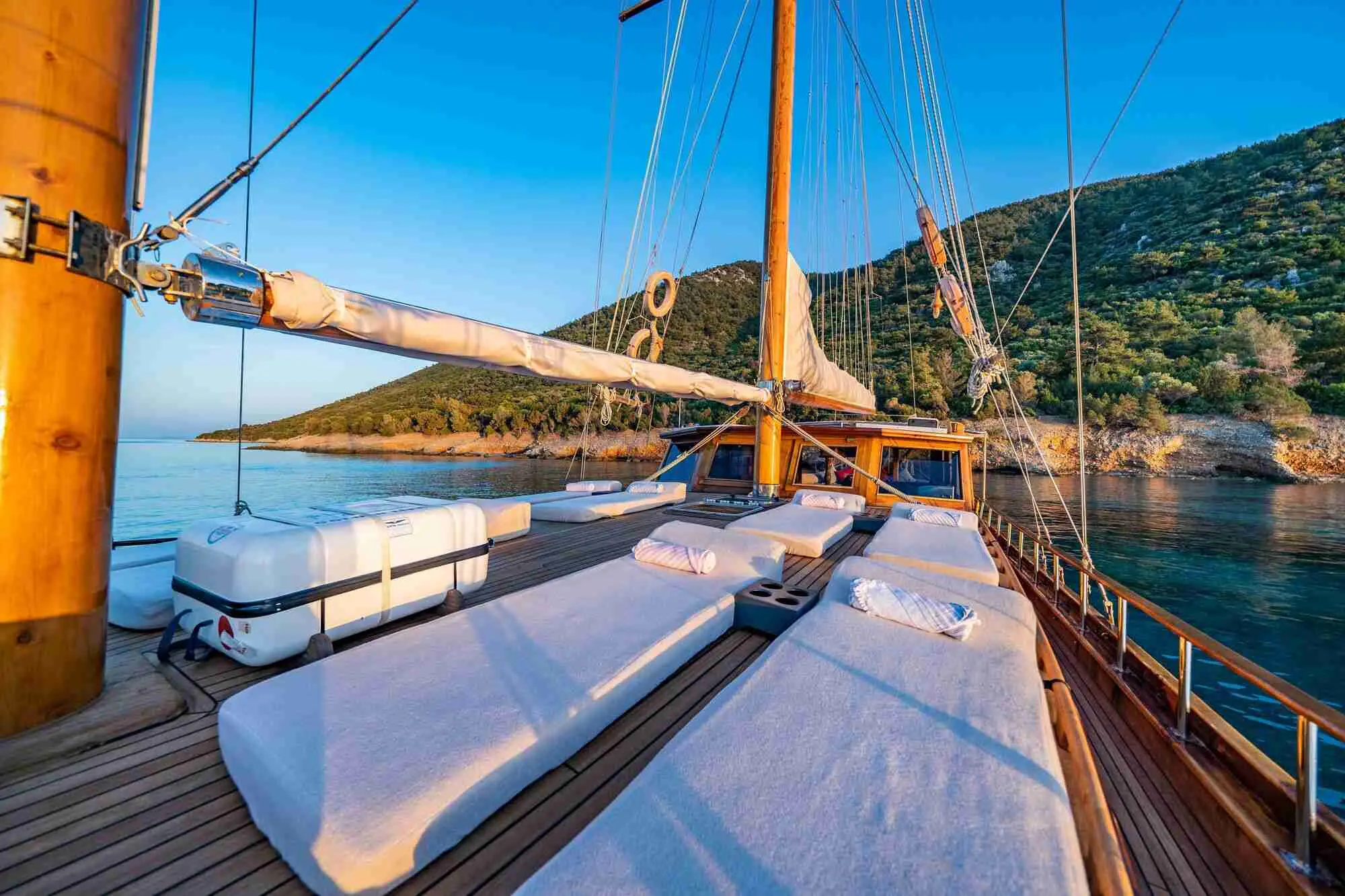The Golden Life Gulet is a testament to the timeless beauty of Turkish maritime craftsmanship. Measuring 21 meters in length and with a beam of 5.85 meters, it offers spacious accommodations and social areas for guests. Its renovation journey highlights a commitment to maintaining the vessel's traditional allure while integrating contemporary comforts and navigational technologies.