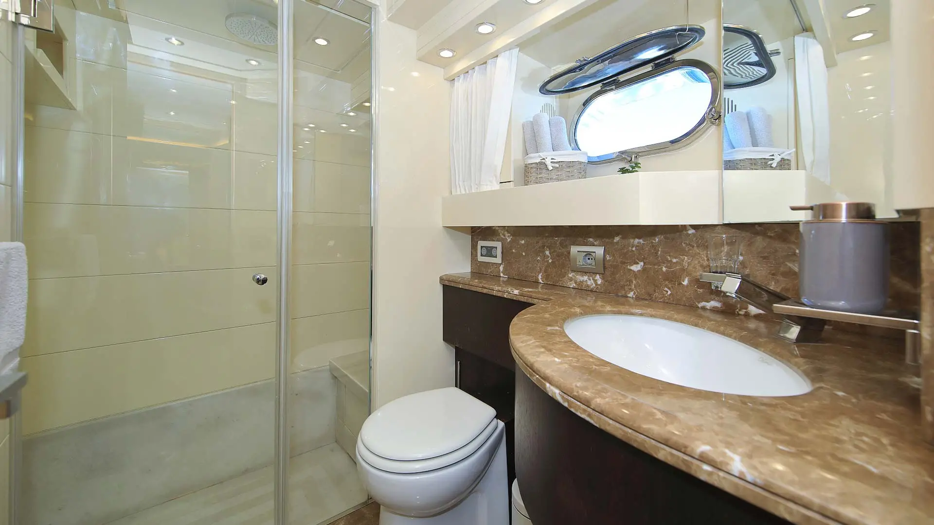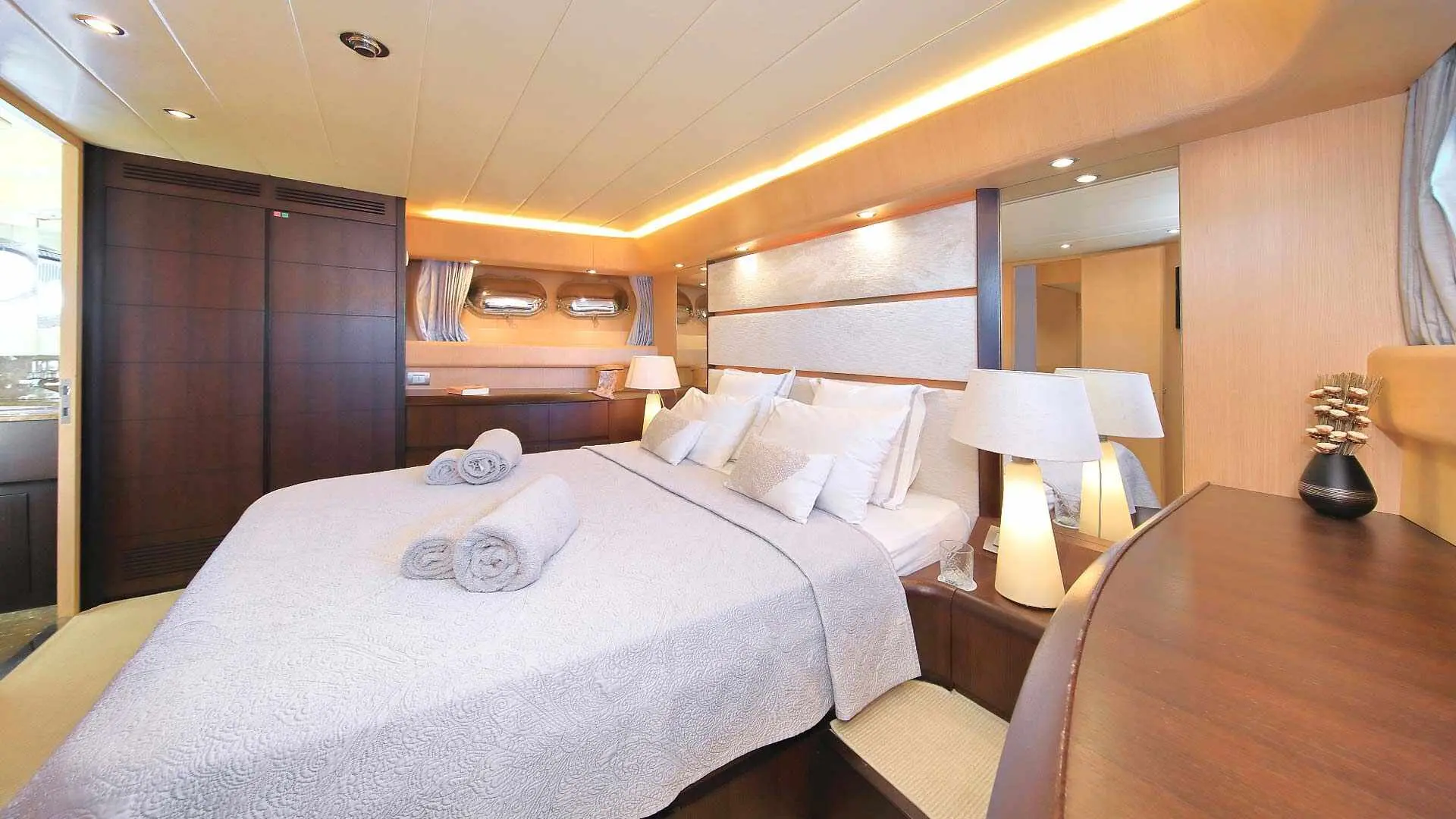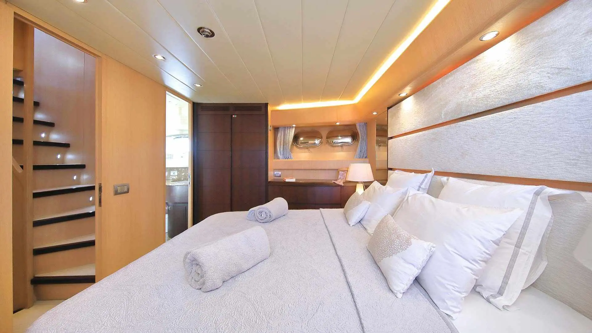 The yacht's accommodation is nothing short of opulent, comprising 1 VIP, 2 double, and 1 twin cabin, each equipped with en-suite bathrooms, state-of-the-art toilettes, and air conditioning. The refined decor and thoughtful amenities ensure a peaceful and comfortable retreat for all guests.