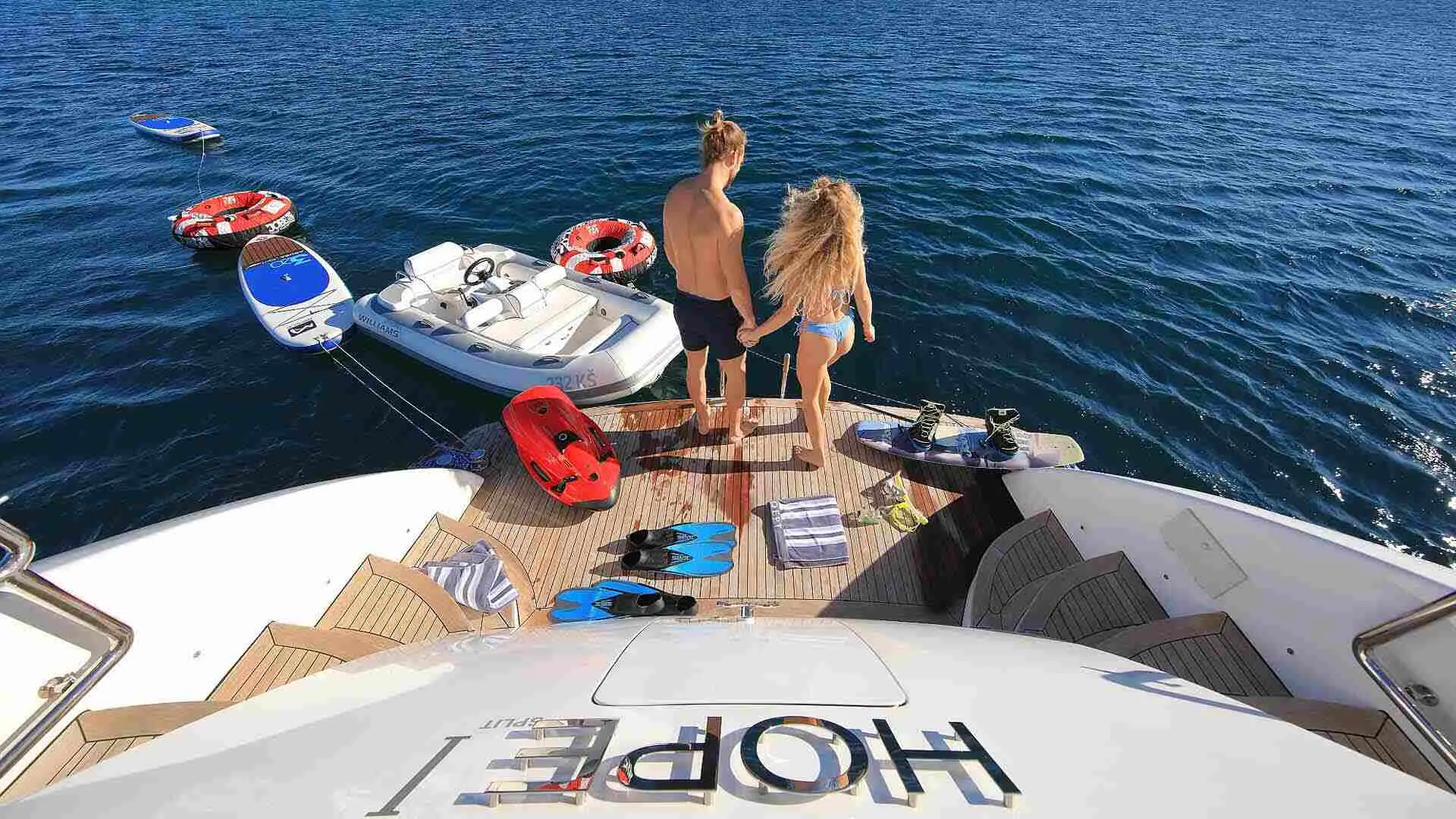 Hope I is equipped with an array of entertainment and leisure facilities. Guests can indulge in the latest movies and shows with satellite TV, stay connected with onboard Wi-Fi, or enjoy an exhilarating ride on the tender Williams 325. For adventure seekers, the Seabob F5S, donut, wakeboard, and SUPs promise endless fun on the water.