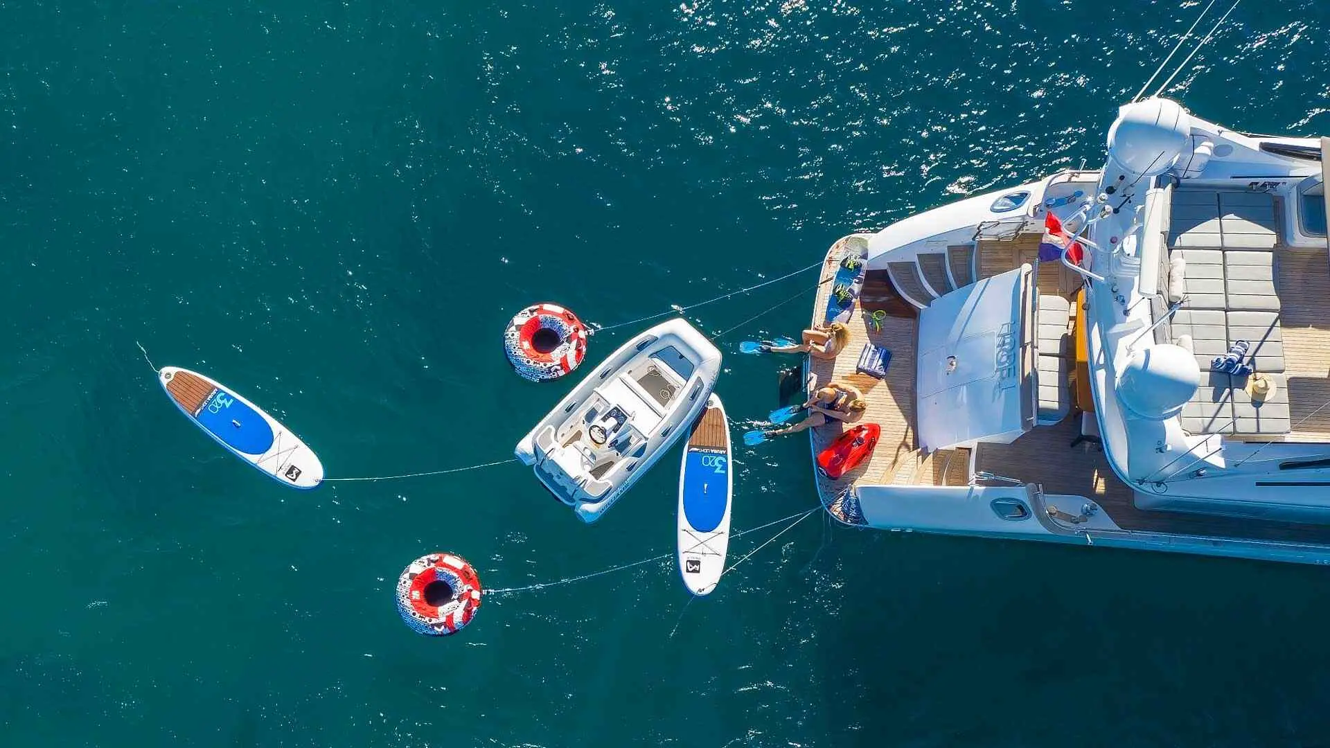 Tender Williams 325 / 100 hp (2019), Seabob F5S (2017), Donut x 2, Wakeboard, SUP x 2, Wi-Fi, Air Conditioning, Satellite TV