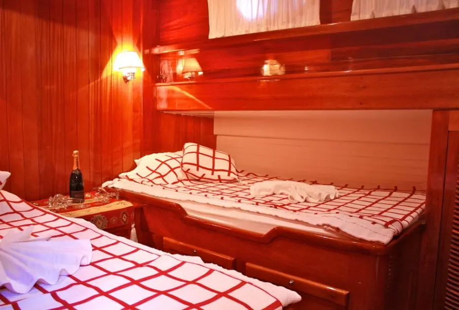 Gulet IL Fratello offers spacious and comfortable accommodations, perfect for relaxing after a day of sailing or exploring. The three double cabins are elegantly designed to offer a cozy and inviting atmosphere, while the twin cabin is perfect for children or additional guests. Each cabin features en-suite bathrooms, ensuring privacy and convenience for all guests. The air conditioning in all cabins allows for a comfortable stay, regardless of the temperature outside.