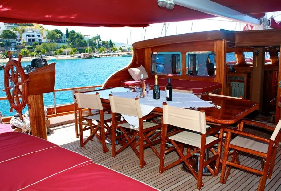 Gulet IL Fratello’s 24-meter length provides ample space for luxurious living areas, while the 6.50-meter beam enhances the vessel’s stability and comfort during navigation. The generous deck space is perfect for sunbathing, socializing, and enjoying the stunning views of the Mediterranean. The refit in 2021 has ensured that the boat is equipped with modern features while retaining its classic charm.