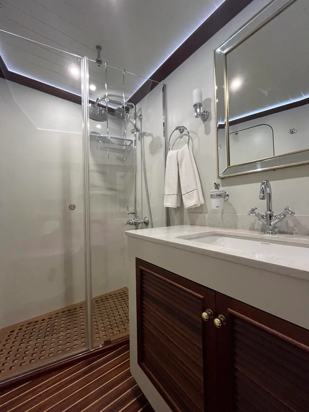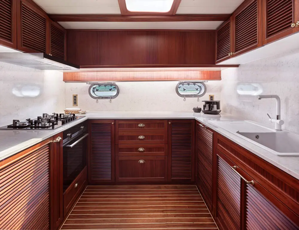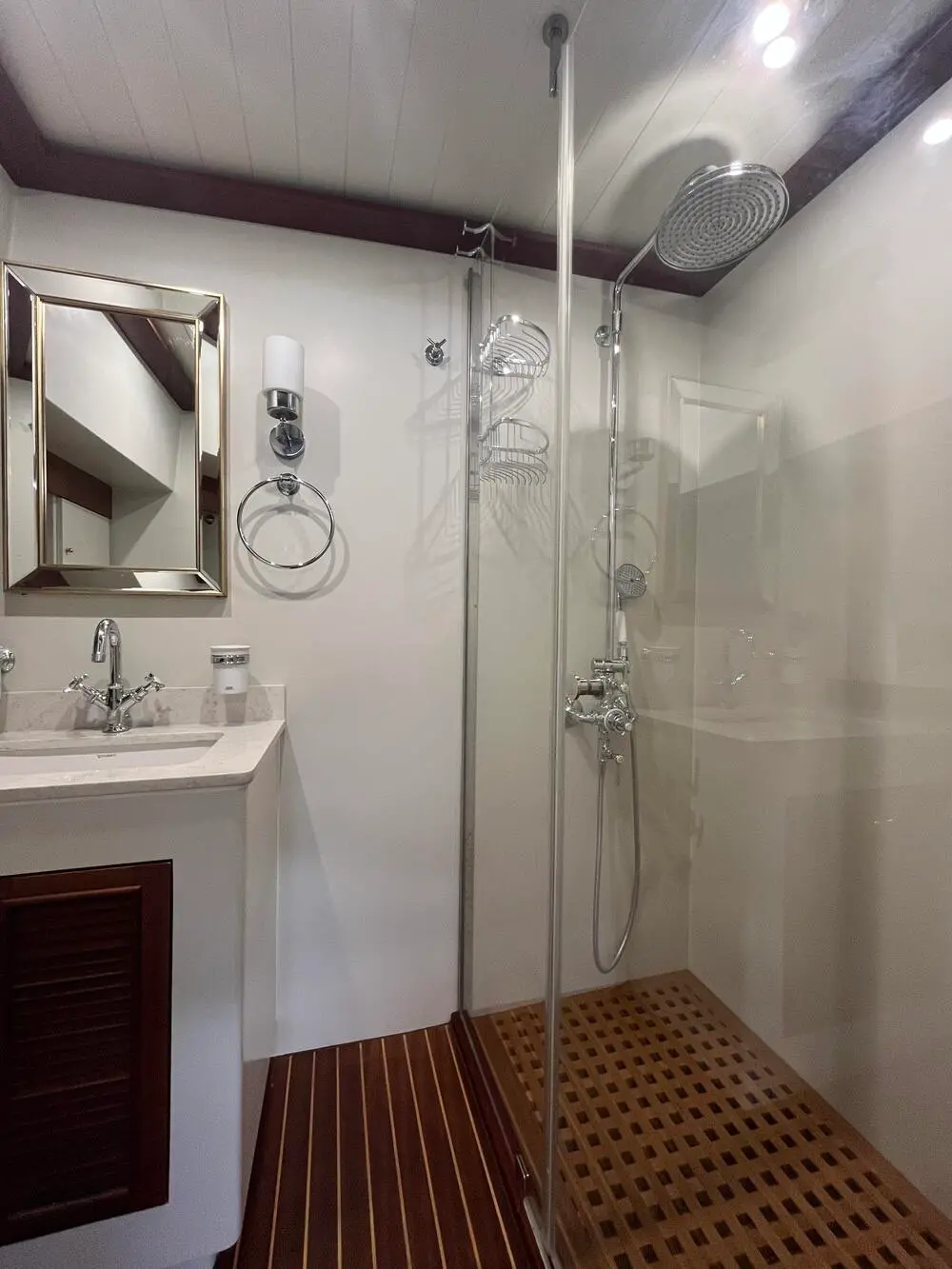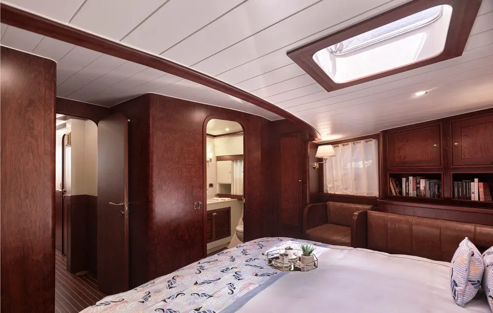 Kaftan is operated by a friendly and professional 4-member crew. Kaftan’s reliable 535 hp Caterpillar engine ensures smooth and quiet cruising, perfect for long coastal journeys or island-hopping adventures. The 19 kW Onan generator supports all onboard systems, including air conditioning and entertainment electronics.