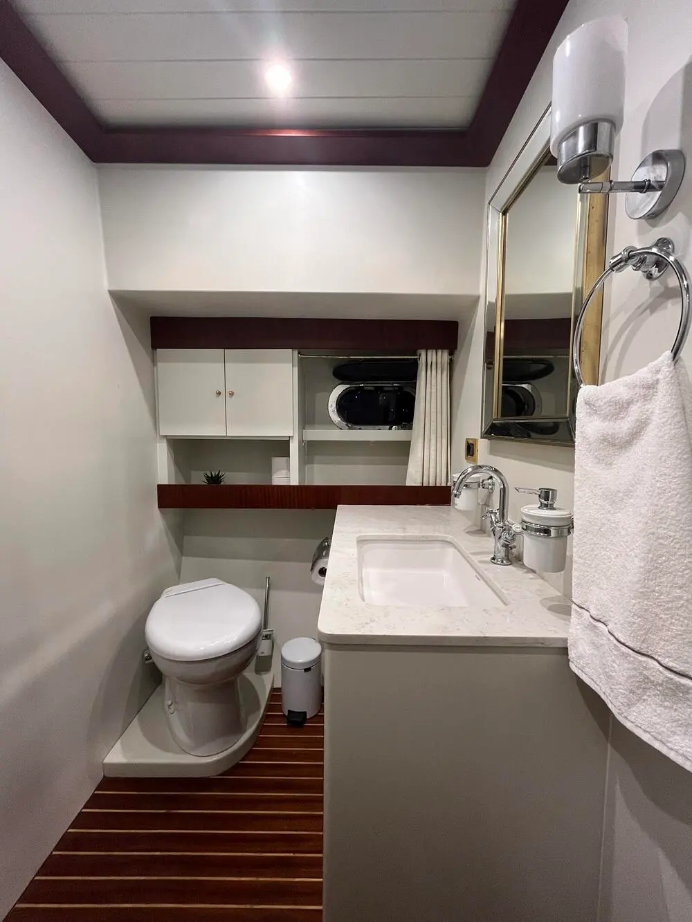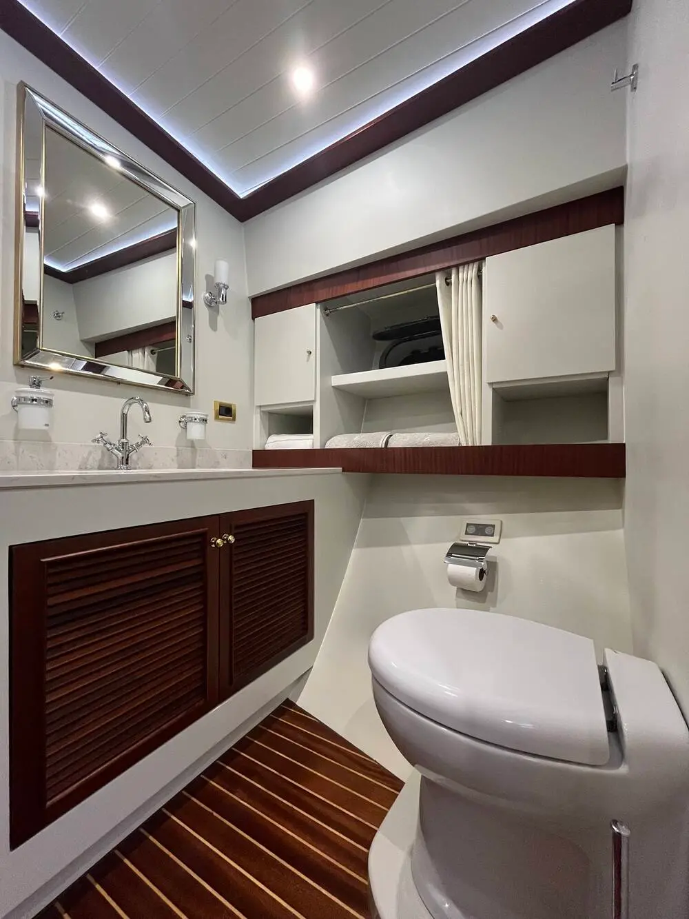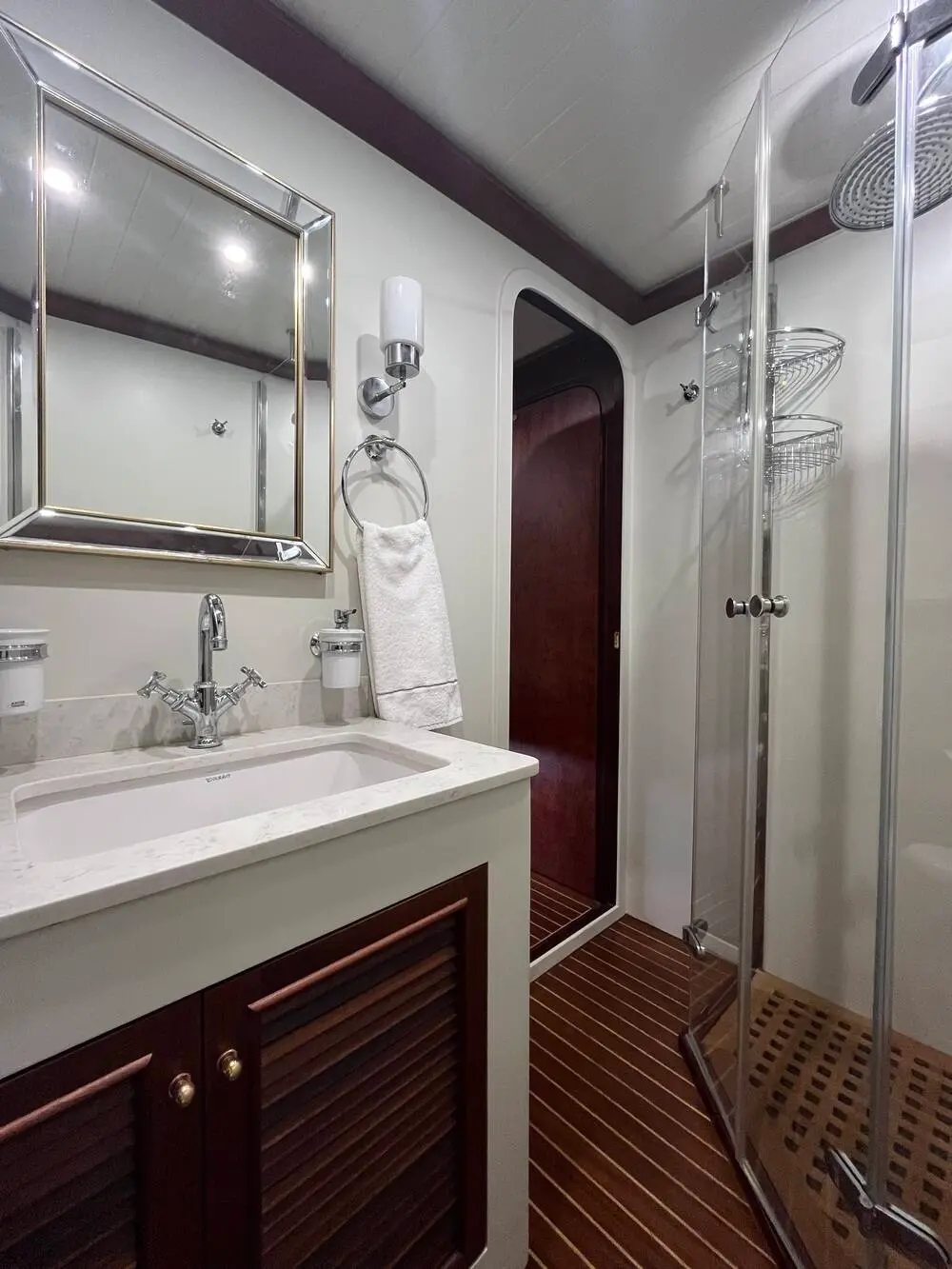 Kaftan is operated by a friendly and professional 4-member crew. Kaftan’s reliable 535 hp Caterpillar engine ensures smooth and quiet cruising, perfect for long coastal journeys or island-hopping adventures. The 19 kW Onan generator supports all onboard systems, including air conditioning and entertainment electronics.