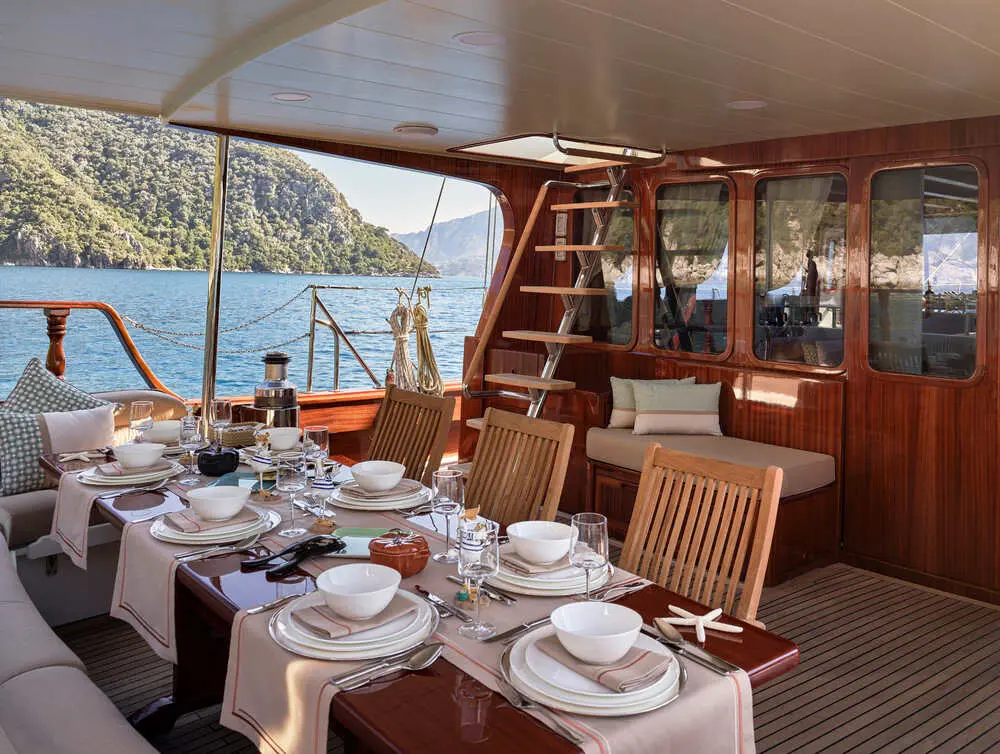 Gulet Kaftan is designed for both connection and solitude. Whether you're sharing a meal or lounging with a book, there’s space for everyone.