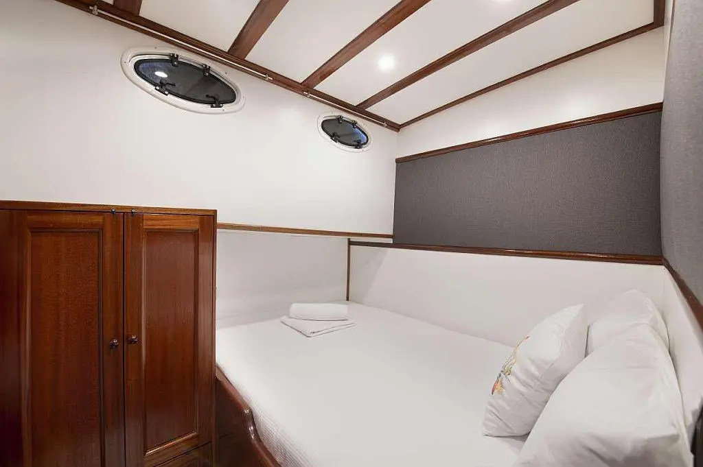Gulet Karaca accommodates up to eight guests across four cabins. Each cabin includes a private bathroom, toilet, and air conditioning, ensuring a relaxing retreat after a day of adventure. The gulet’s three-member crew is dedicated to providing top-tier hospitality. From expertly navigating the waters to preparing delicious meals, the crew ensures a seamless and memorable experience for all guests.
