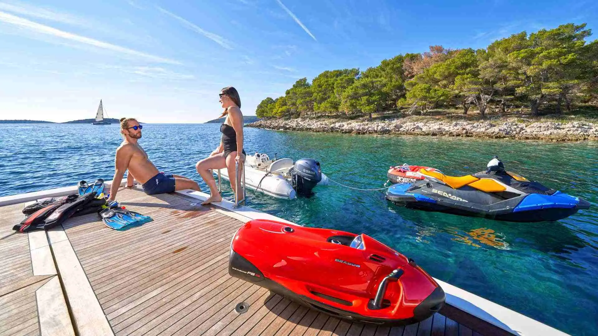 Tender Capelli 3.6m Yamaha 40, Sea doo SPARK, Seabob, SUP x 2, Water ski, Donut x 2, Snorkeling set x 6, Air Conditioning, Wi-fi, TV, Netflix