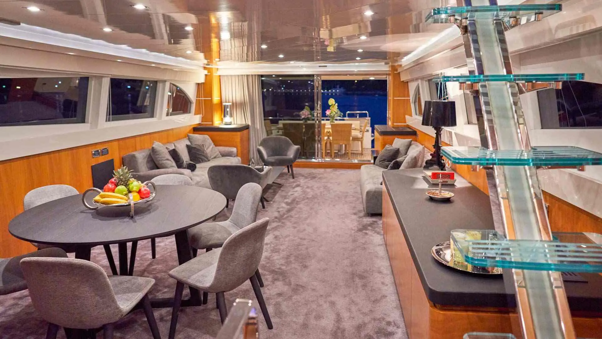 Dining aboard Karisma is a culinary delight, with meals prepared to showcase the rich flavors of the Mediterranean. Guests can enjoy gourmet dishes in the elegant dining area or opt for al fresco meals on the deck, complemented by the fresh sea breeze and panoramic views.