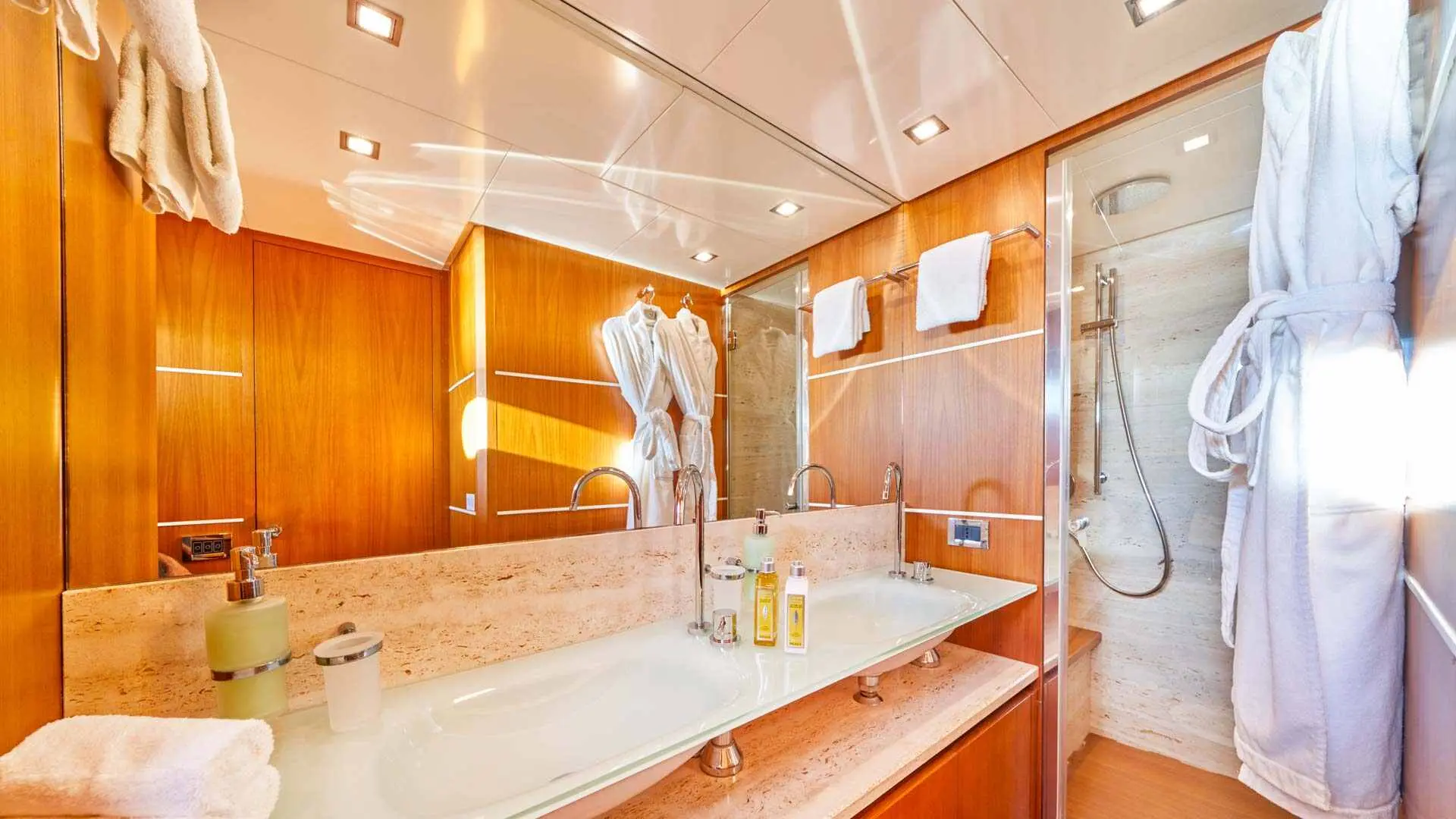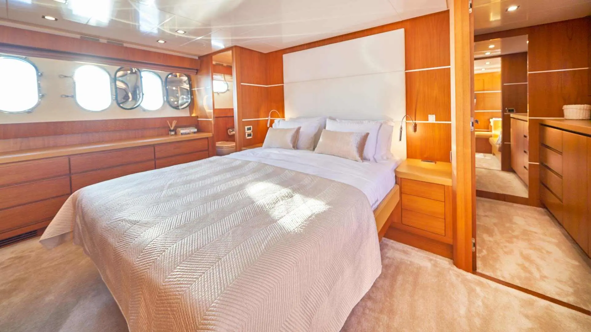 Accommodations aboard Karisma include 3 double cabins and 1 twin cabin, each with en-suite bathrooms and full air conditioning, ensuring privacy and comfort for all guests. The yacht's interiors reflect a keen attention to detail and a commitment to luxury, providing a serene and lavish environment.