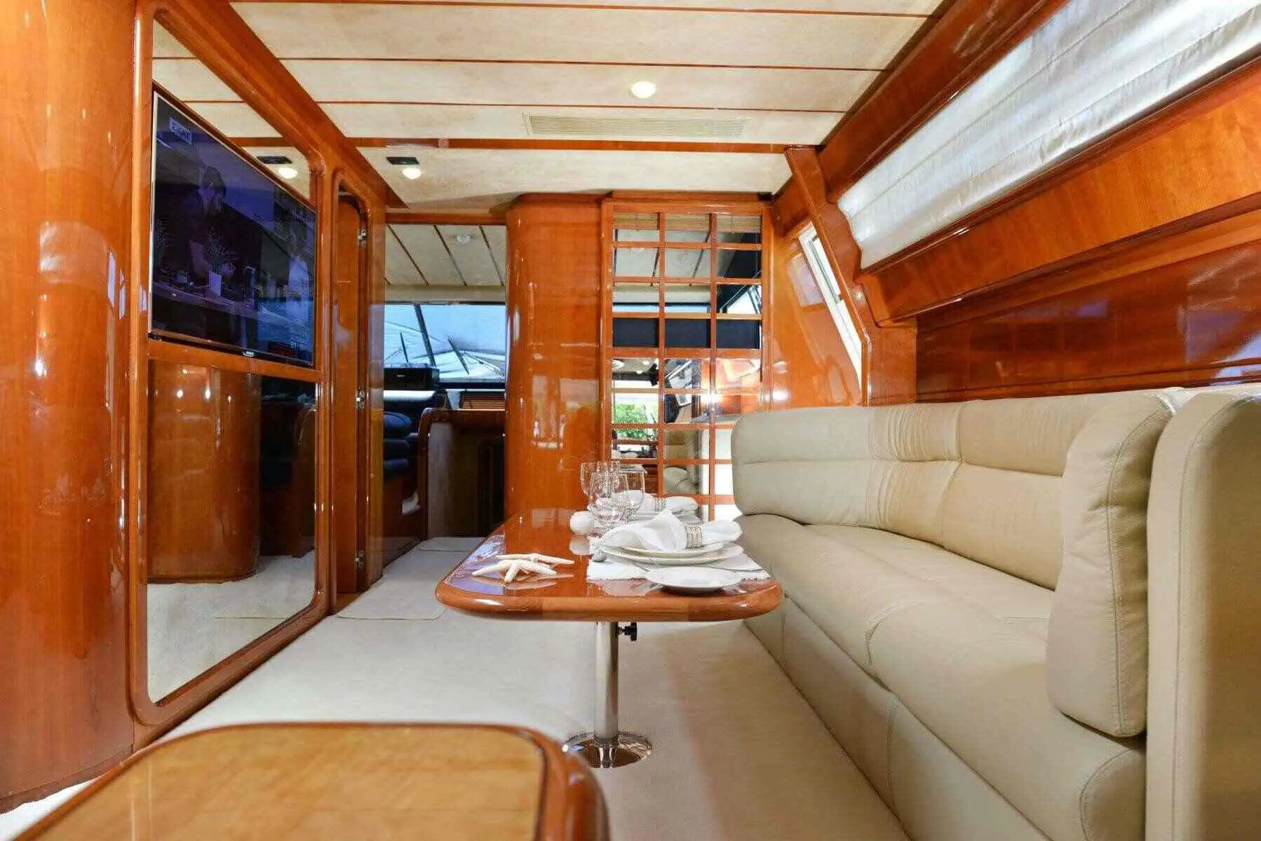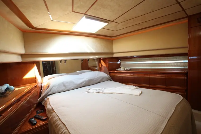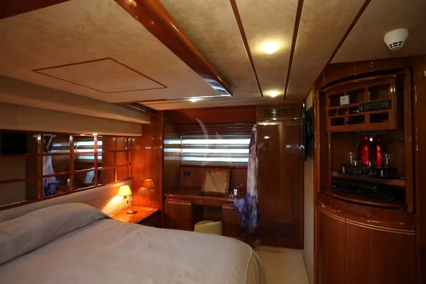 The yacht boasts an elegant cabin configuration, including 2 double and 2 twin cabins, each with its own en-suite bathroom and home-type toilettes. Air conditioning throughout the vessel ensures comfort in the warm Mediterranean climate, while the tastefully appointed interiors provide a serene and luxurious retreat.