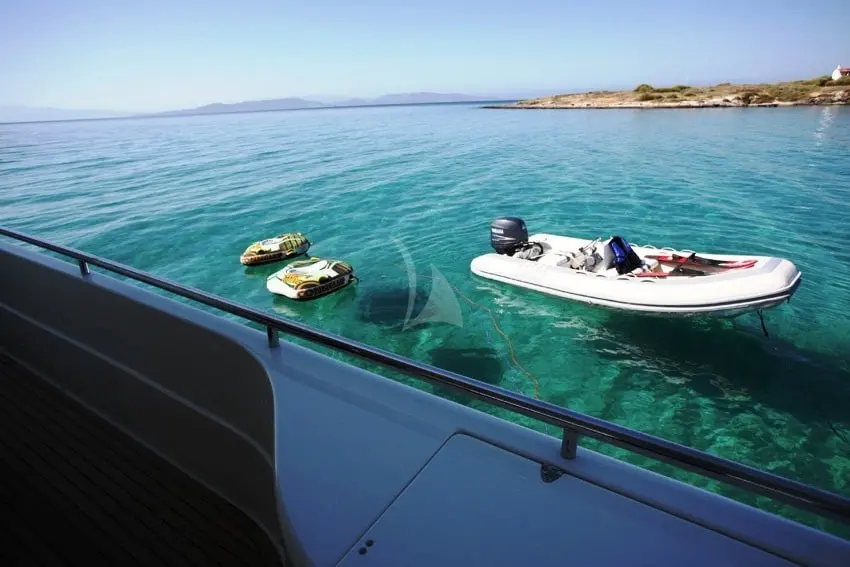 Tender 3,60M Zodiac with 60.HP, Mono ski, Sofa, Tubes, Sea-Doo Spark, Water ski, Snorkeling Equipment, Swimming Platform, Banana, Stand up Paddles, Swimming Platform, TV Set, LED TV, Air Conditioning, Wi-Fi connection on board