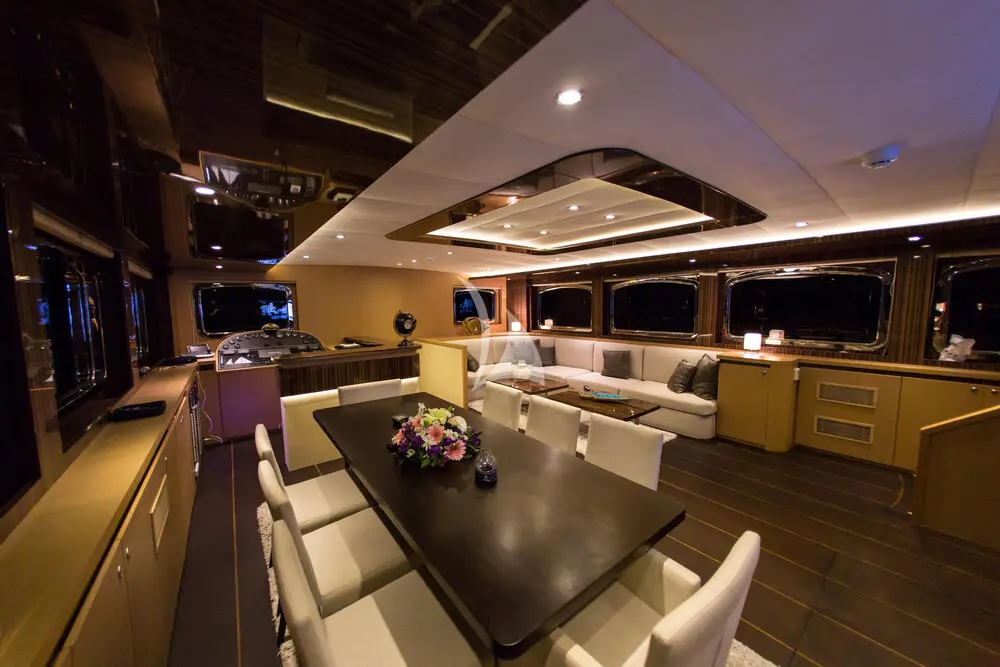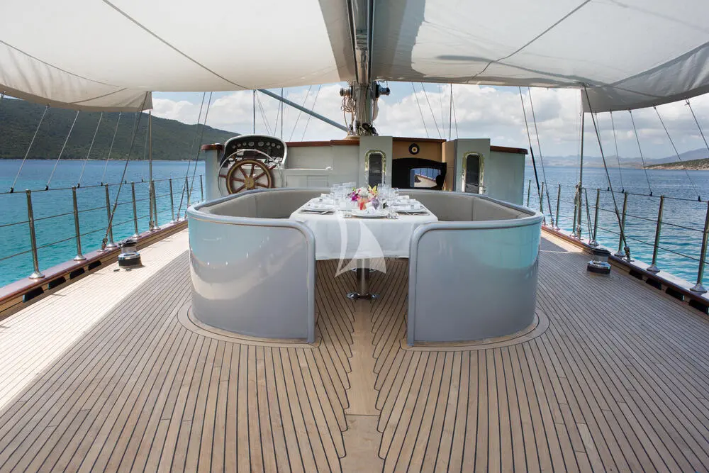 Crafted in 2009 and meticulously maintained, Le Pietre features a sleek wooden hull, rich mahogany interiors, and expansive deck areas. With a beam of 8 meters and a draft of 3.45 meters, she offers excellent stability and smooth sailing through the Aegean Sea.