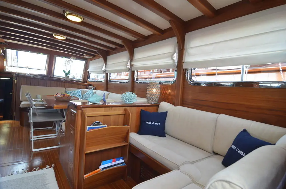 Step inside the Gulet Mar & Mar, and you'll be welcomed by an atmosphere of elegance and comfort. The interiors are tastefully designed with high-quality materials and furnishings, ensuring a luxurious stay for guests. Each cabin is equipped with modern amenities, including air conditioning and en-suite bathrooms, to maximize comfort and convenience.
