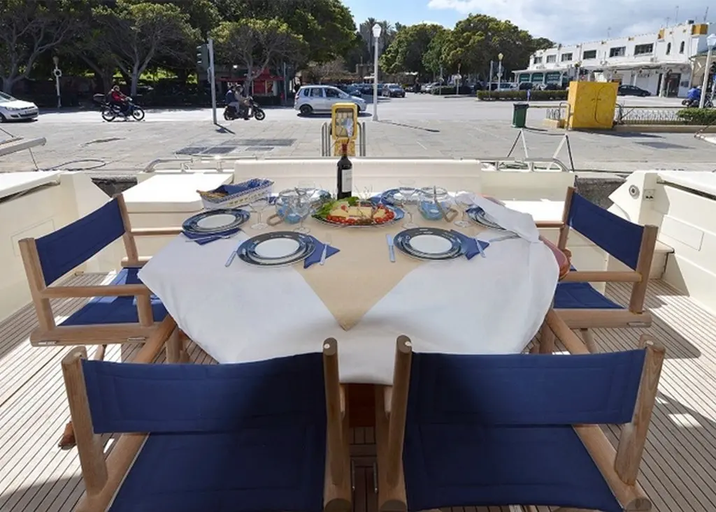 Guests aboard Mary can indulge in gourmet meals prepared by the onboard chef, served in the elegant indoor restaurant. Each dish is crafted to showcase the best of Greek and international cuisine, complemented by the breathtaking views of the Aegean Sea.