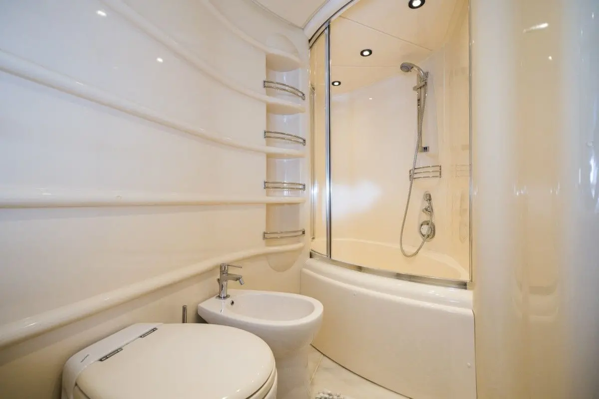 The yacht’s accommodation is nothing short of spectacular, featuring one master, two double, and one twin cabin, each with its own shower box and electric toilette, ensuring privacy and comfort for up to 8 guests. The air-conditioned interiors provide a cool respite from the sun, offering a perfect blend of luxury and functionality.