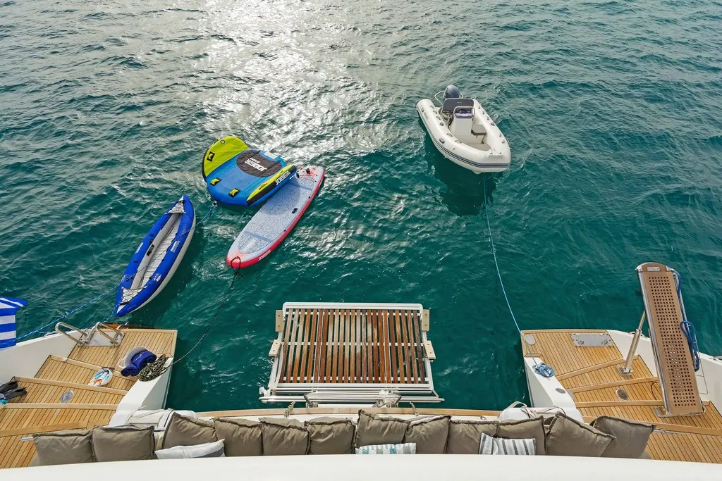 Aboard Meliti, guests have access to a wide array of entertainment options and water toys, including paddleboards, water skis, and a dinghy with a 40 hp engine. Whether seeking relaxation or adventure, Meliti caters to all tastes and interests.
