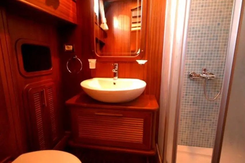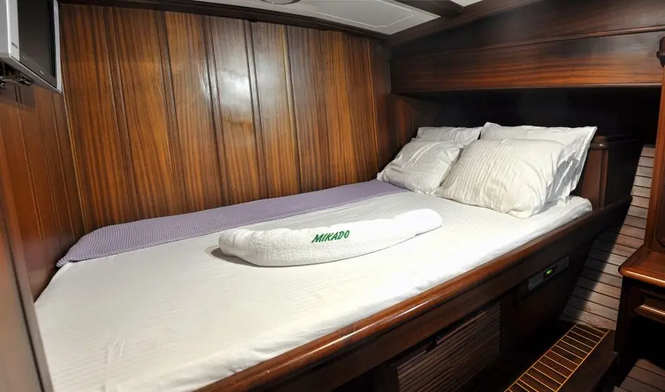 Mikado is outfitted with advanced navigational technology, including radar, depth sounder, VHF radio, GPS, and autopilot, ensuring safe and seamless navigation through Turkey's stunning maritime landscapes. Whether you're sailing through the turquoise waters of the Aegean or exploring the rich history of the Mediterranean, Mikado offers a sailing experience that is both exhilarating and serene.