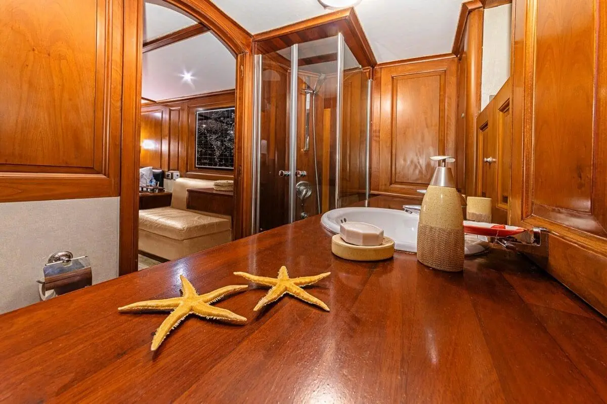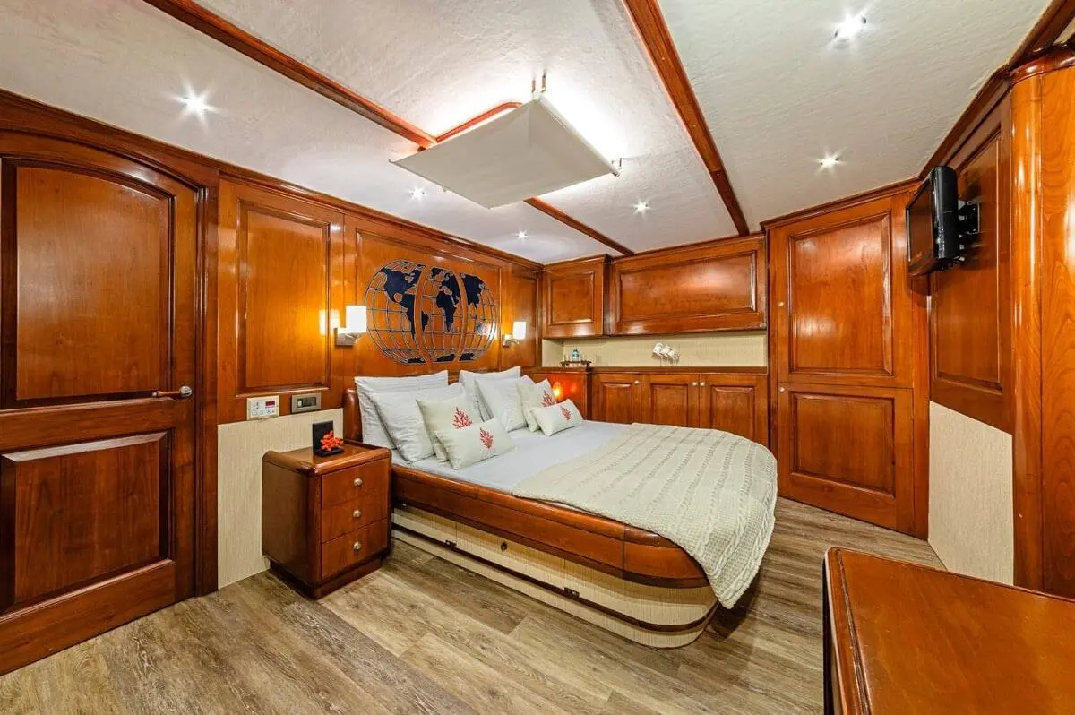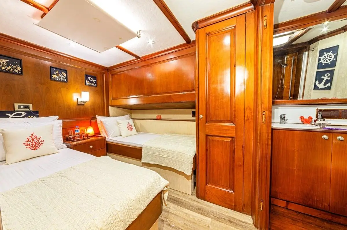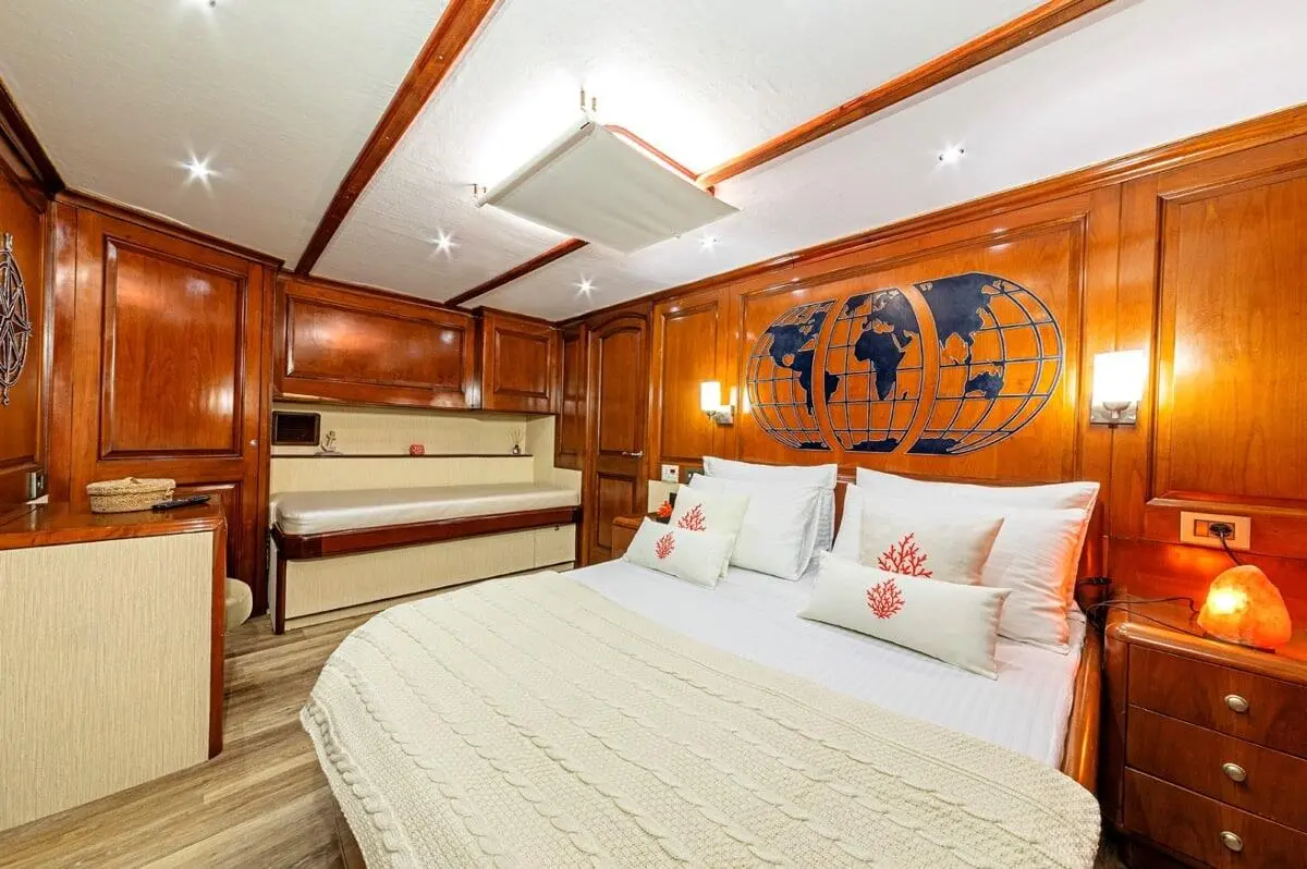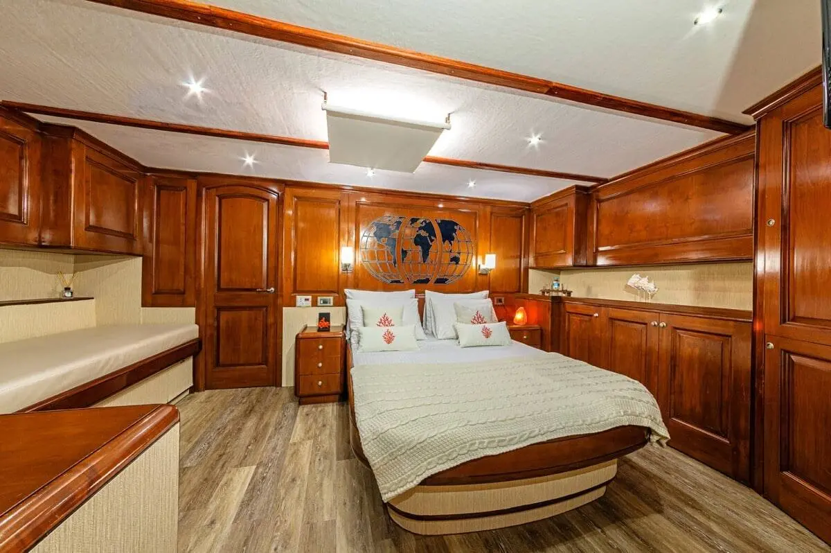 Capable of hosting up to 9 guests, each cabin comes equipped with air conditioning, en-suite bathrooms, and ample storage. Whether you’re lounging in the VIP suite or enjoying the comfort of a twin cabin, every inch of the space speaks of luxury and care.
