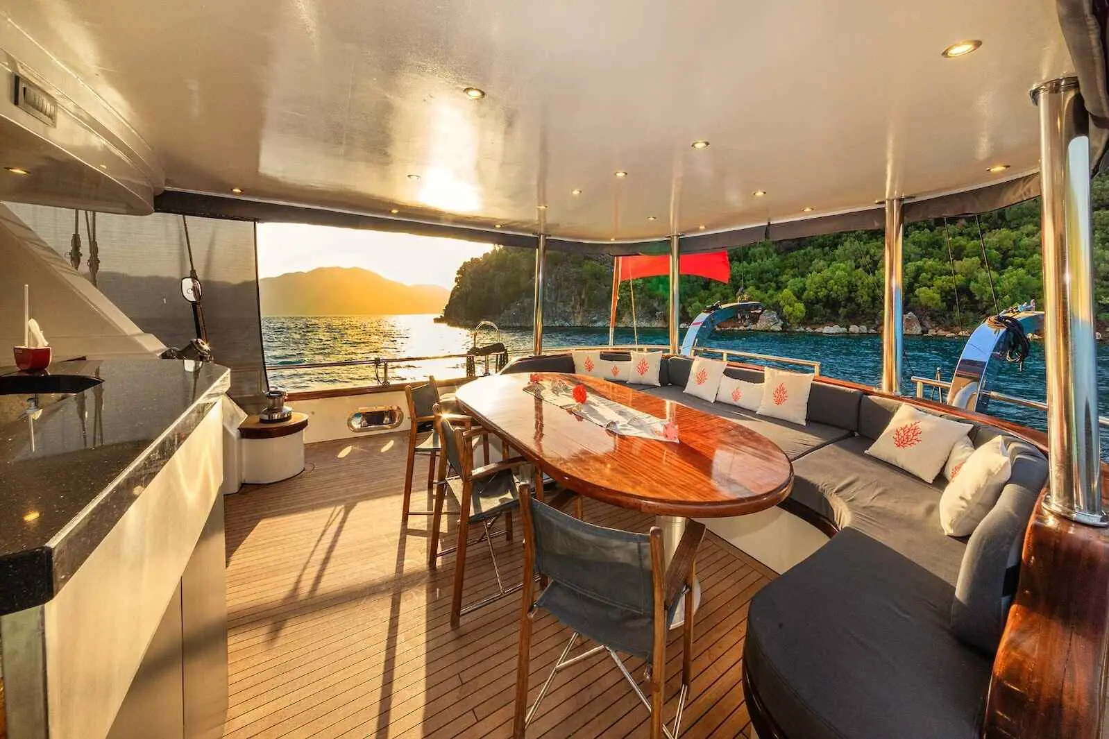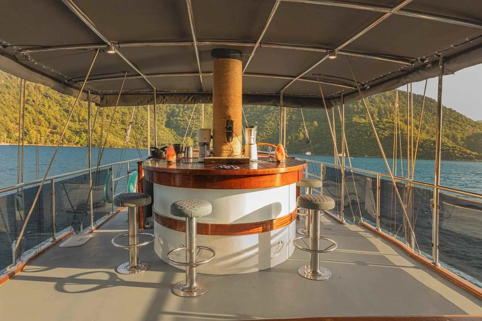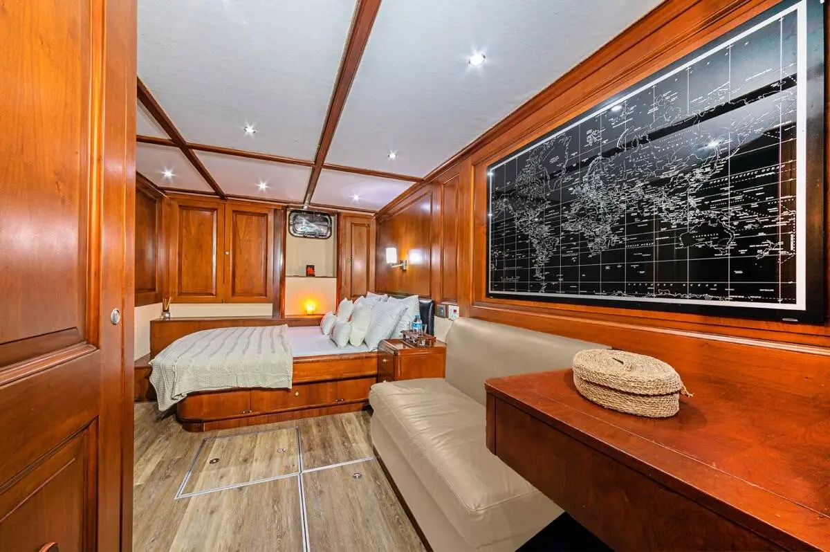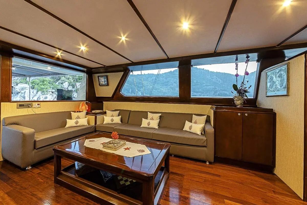 Even if navigation specs aren't your main concern, it's good to know that Mio Vento cruises effortlessly at 10 knots. The engine’s reliability and the gulet's structural stability make every voyage smooth, no matter the destination. Step inside and you're welcomed by warm wood tones, soft lighting, and elegant upholstery. The design merges traditional Turkish gulet aesthetics with modern luxury.