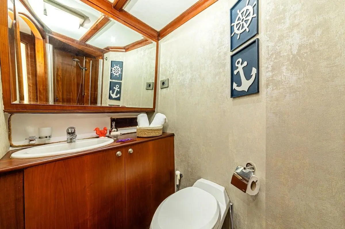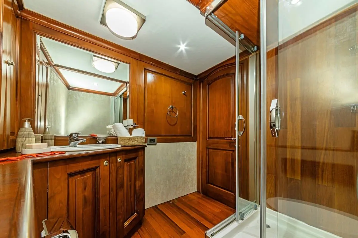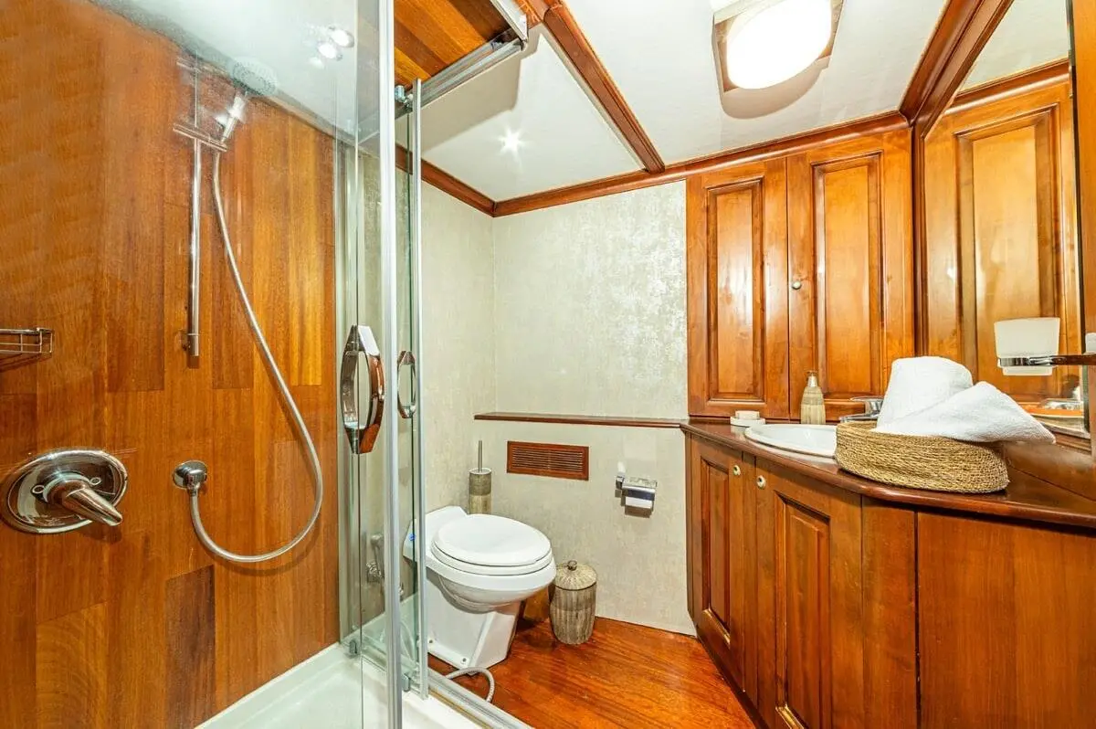 From modern bathrooms to fully air-conditioned interiors, every detail aboard Mio Vento is designed for maximum guest satisfaction. Enjoy a well-cooled environment during the hot summer months, or freshen up in elegantly designed washrooms after a swim in the sea.