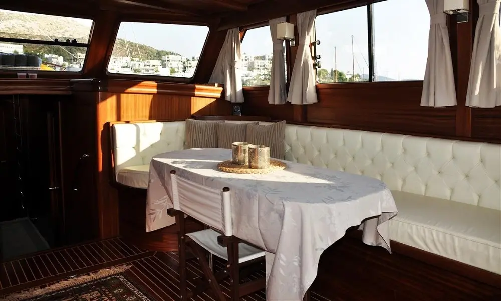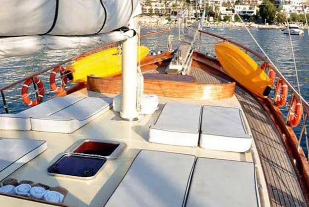 Constructed in 1975 and thoughtfully refitted in 2010, Neptun represents the pinnacle of gulet craftsmanship. Spanning 21 meters in length with a beam of 5.60 meters, this motor sailor gulet boasts a draft of 2.40 meters, ensuring a stable and smooth sail across the turquoise waters. The Turkish flag billowing in the wind, Neptun proudly calls Bodrum its base port, ready to embark on journeys that capture the spirit of the Aegean.