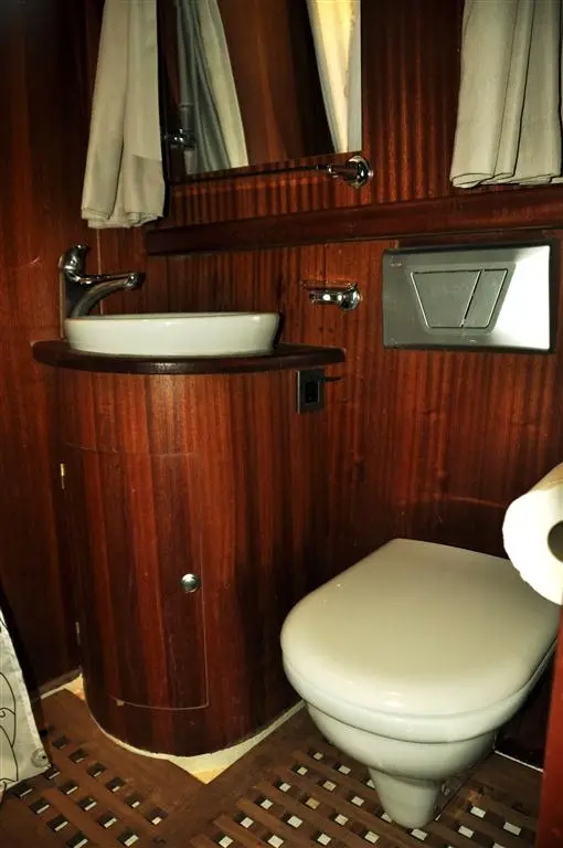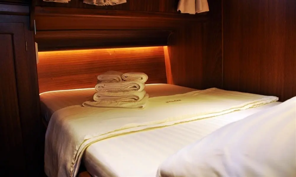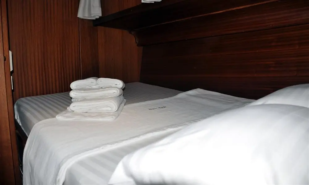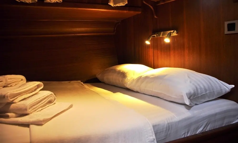 Neptun's interior echoes the warmth and charm of its wooden exterior. Four double cabins, each a haven of tranquility, offer guests a comfortable retreat after a day of exploration. Equipped with air conditioning, home-type toilettes, and showers, these cabins meld rustic charm with modern conveniences, ensuring a restful and rejuvenating stay.