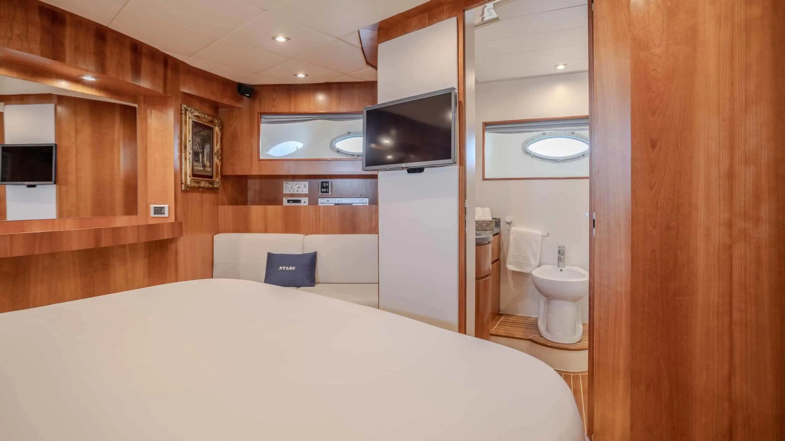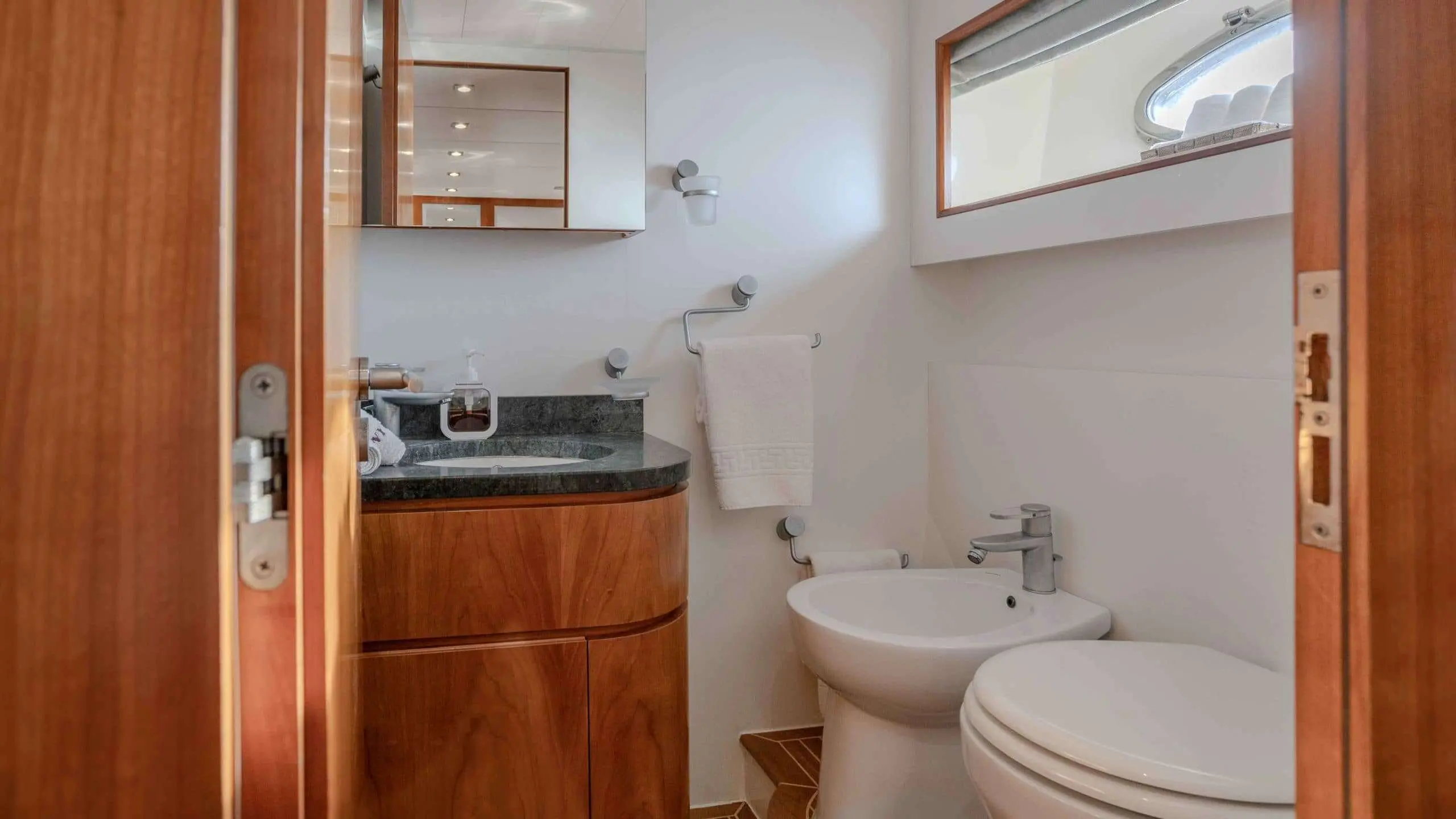 All cabins include bathrooms and toilettes, designed to provide convenience and privacy. The entire yacht is equipped with air conditioning, ensuring cool and comfortable indoor temperatures no matter the season.