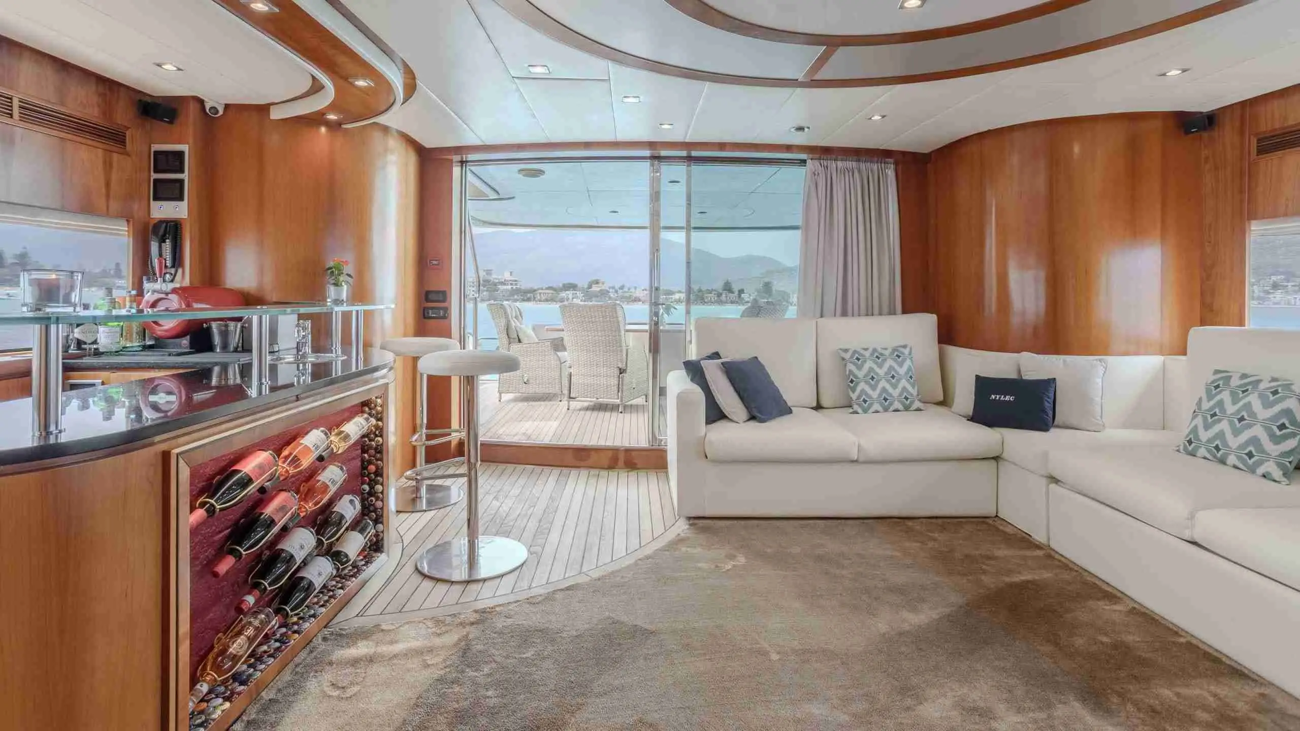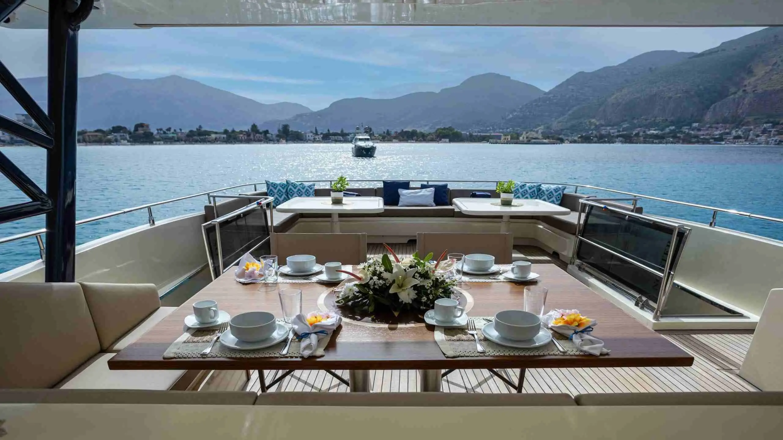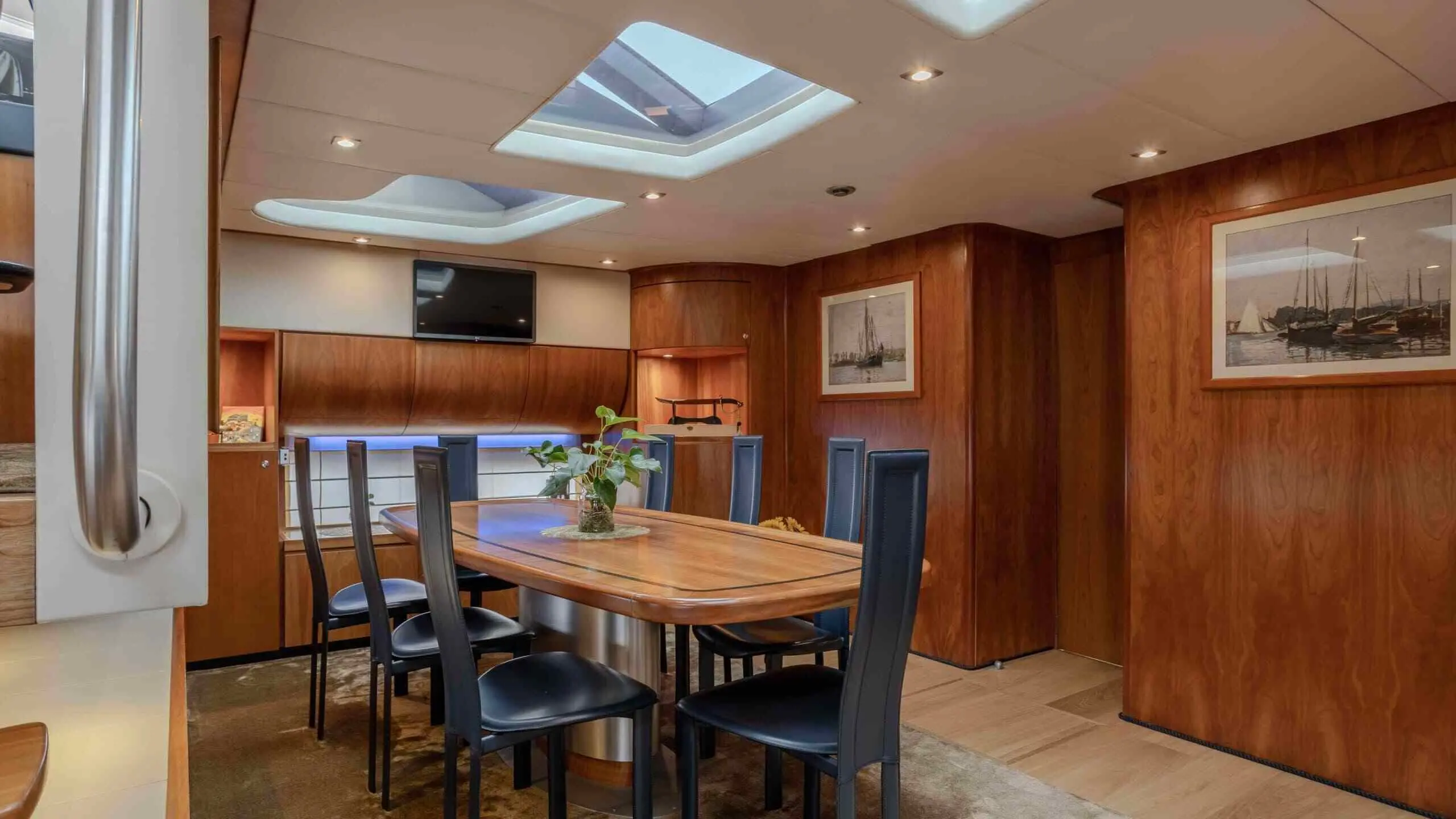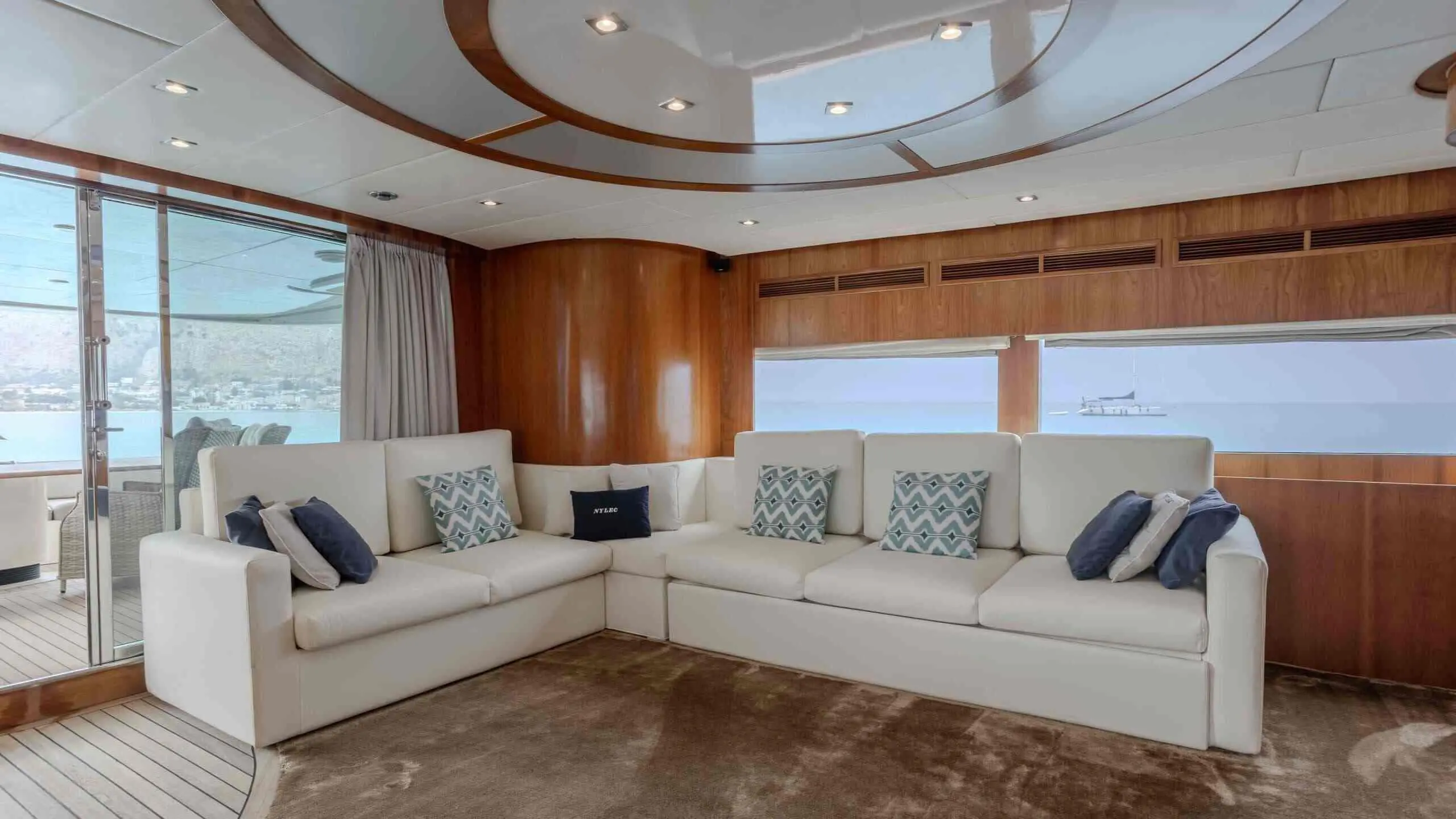 Inside the yacht, guests can unwind in the salon, enjoy cozy seating areas, and appreciate the inviting atmosphere. Whether you're reading, chatting, or simply soaking in panoramic views from the windows, relaxation comes easily aboard Motor Yacht Nylec.