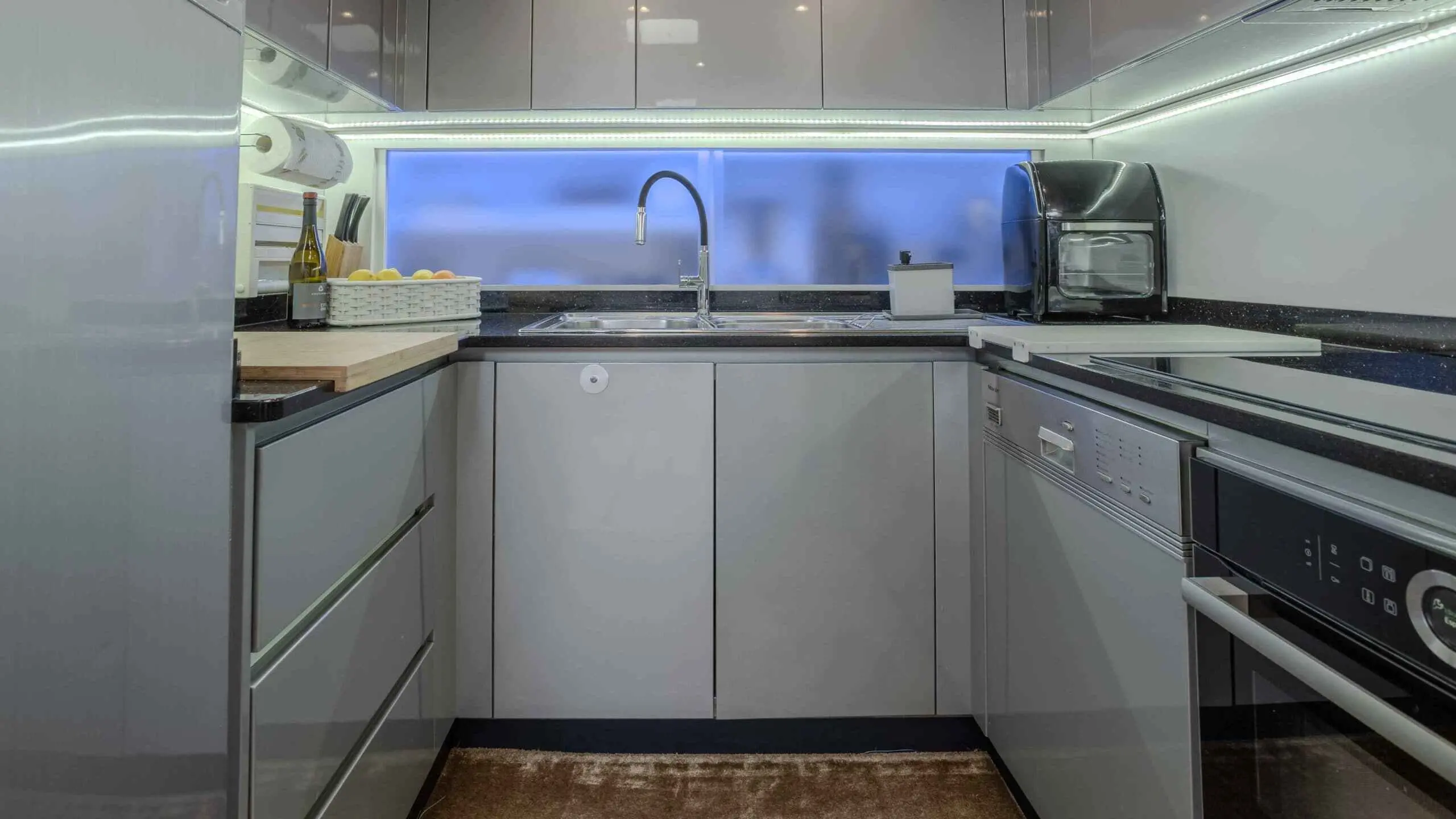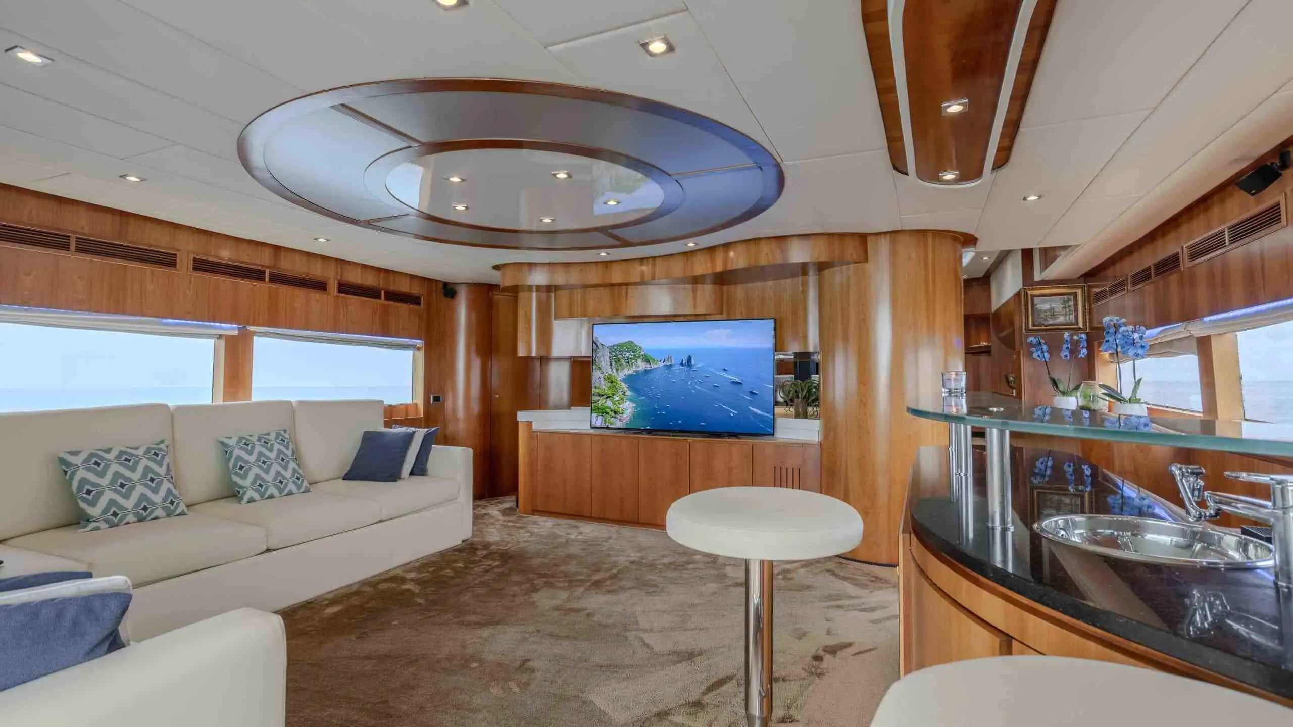 The refreshed interiors create a relaxing ambience with modern touches and smart space usage that enhances the overall charter experience.