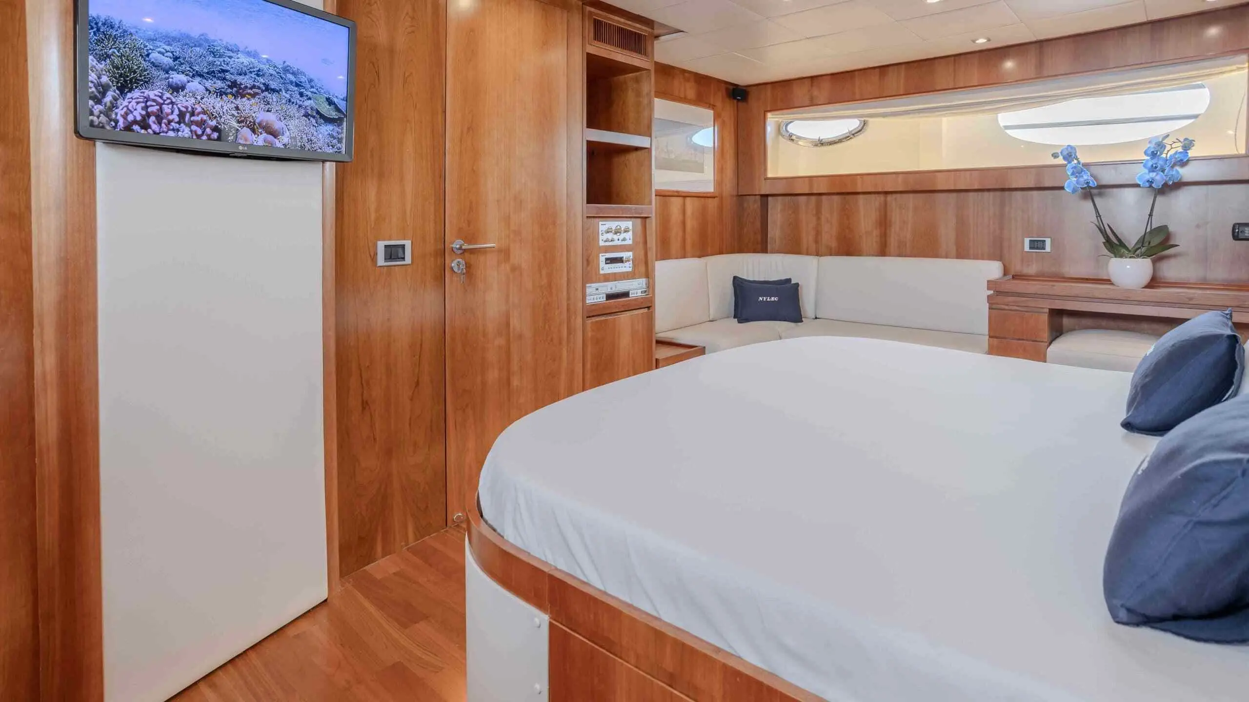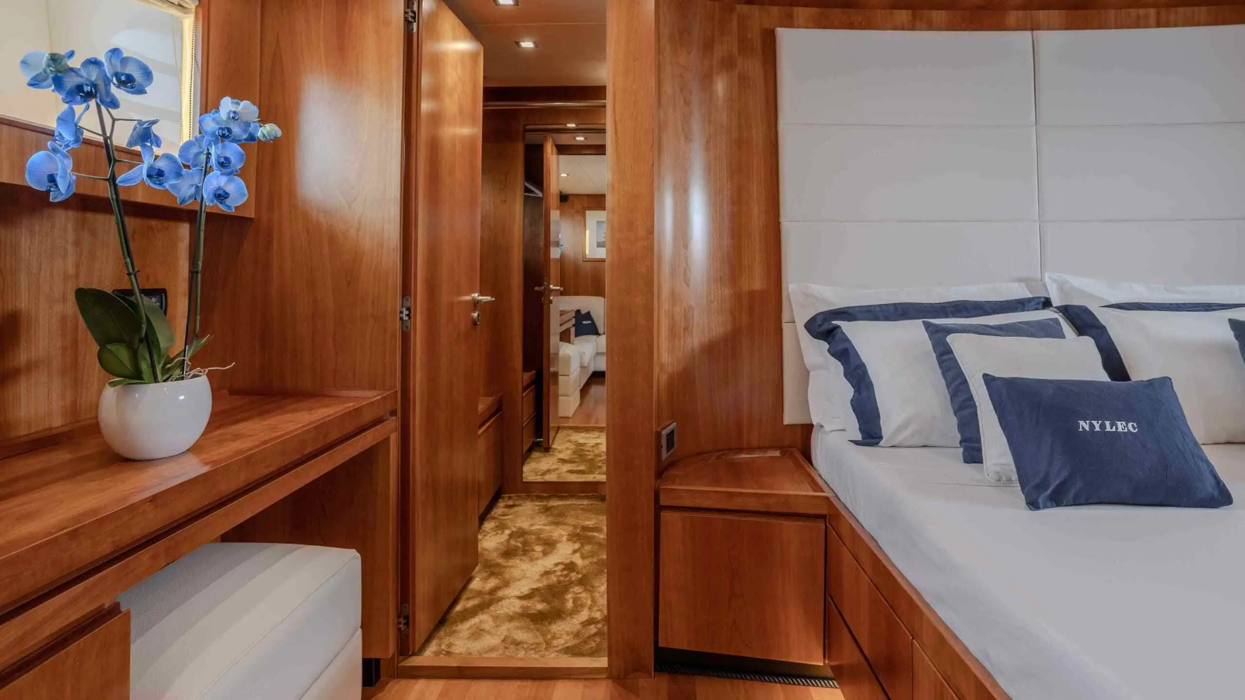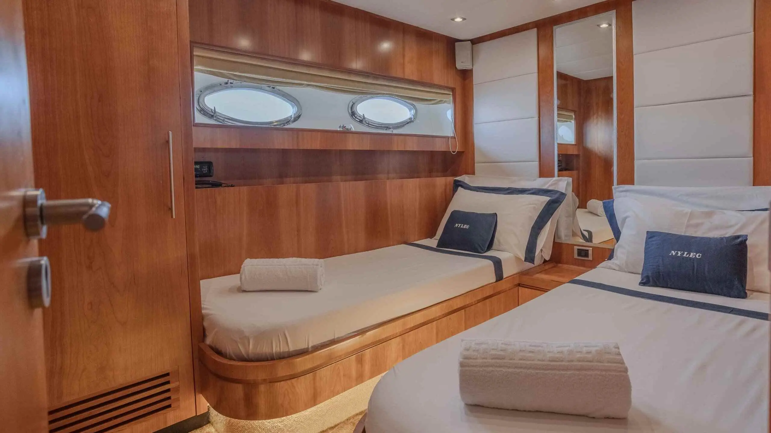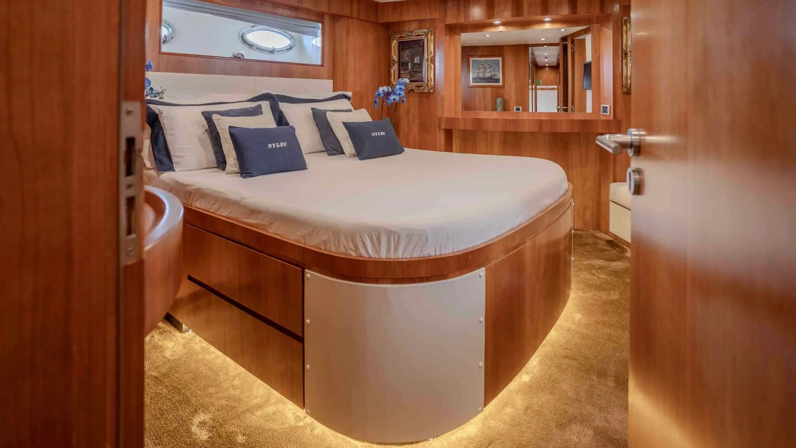 Motor Yacht Nylec comfortably accommodates 8 guests in 4 beautifully appointed cabins. Each cabin showcases refined décor, quality bedding, and thoughtful design to ensure restful nights and peaceful mornings.